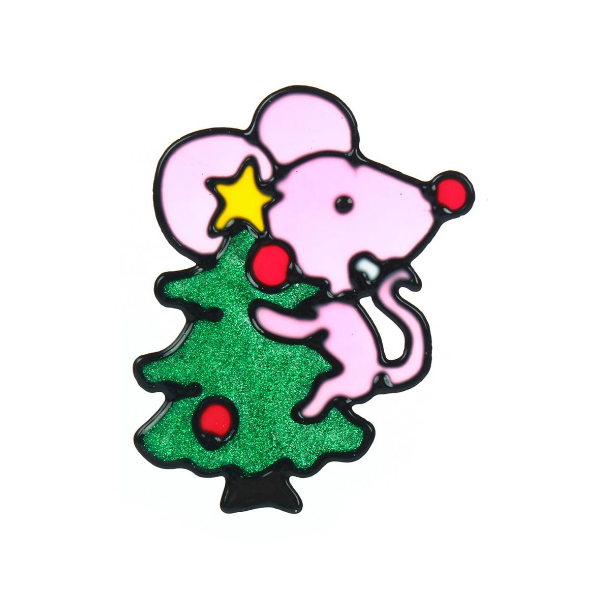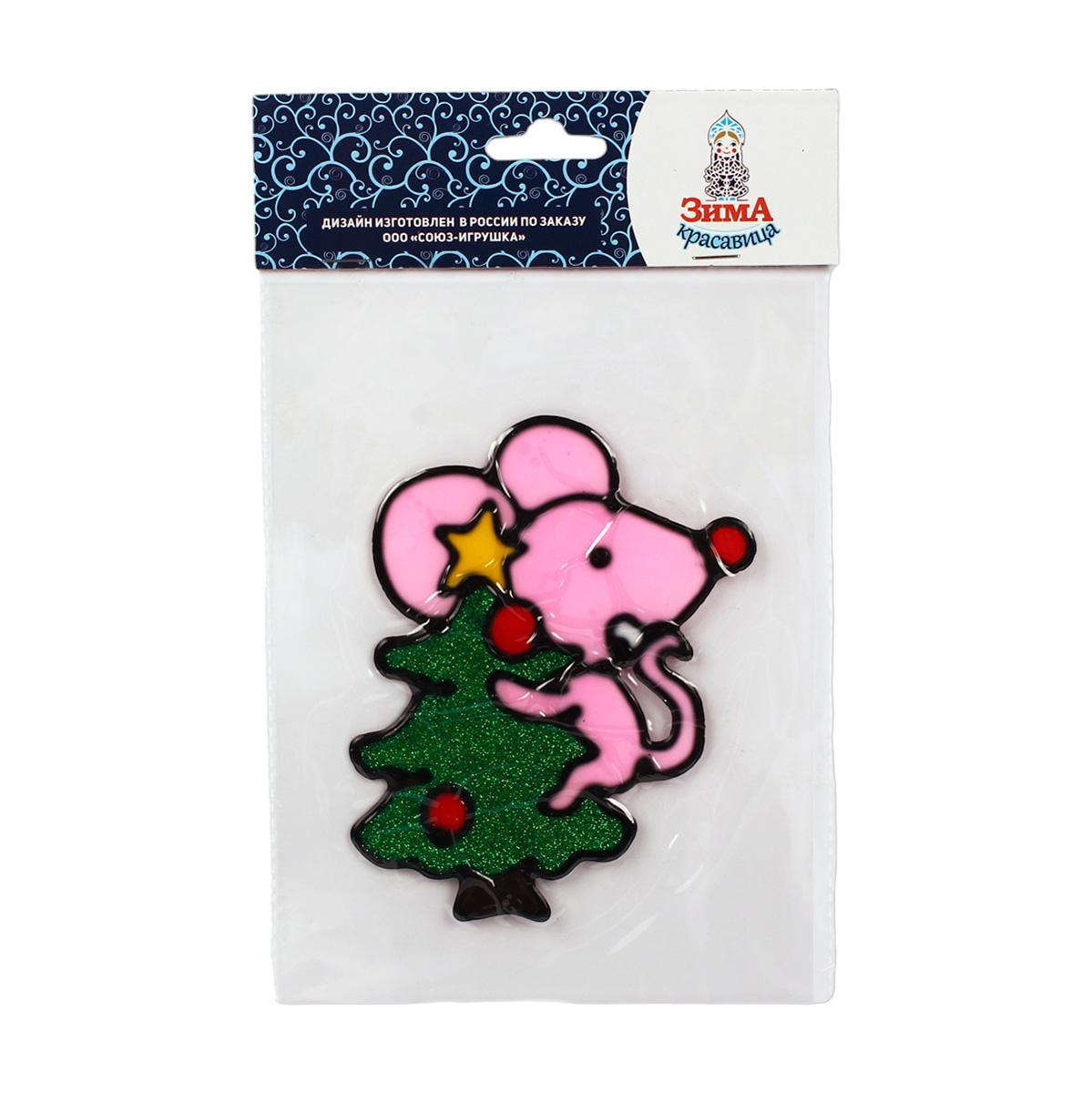 Добавьте яркий штрих в оформление дома с помощью новогоднего витража «Символ года». Этот декоративный элемент с милым мышонком, держащим ёлку, создаёт атмосферу сказочного зимнего вечера. Яркие цвета, блёстки и мультяшный стиль делают витраж эффектным акцентом для интерьера, а компактный размер позволяет разместить его на окне, дверях или мебели.