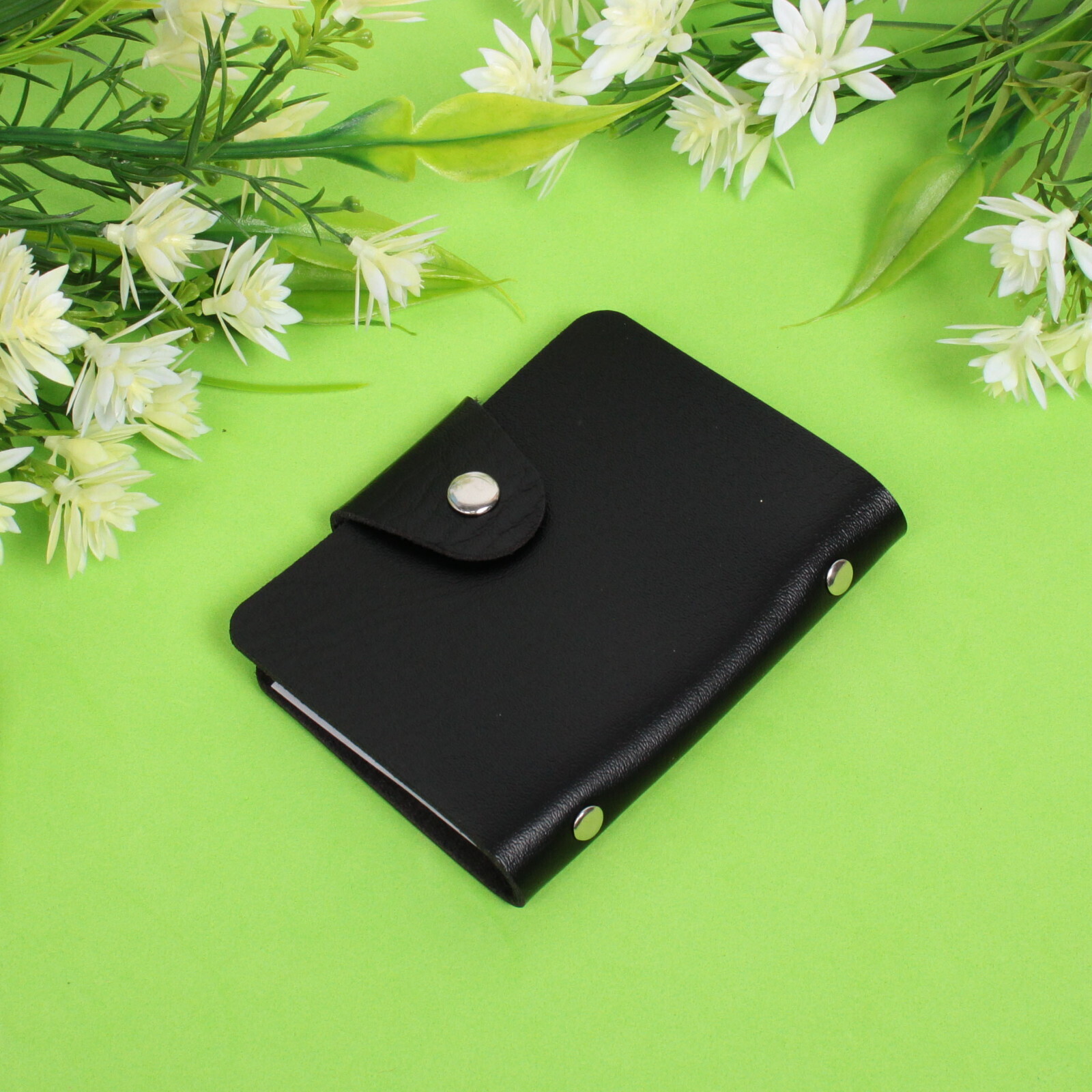 Визитница состоит из 12 листов, каждый из которых может вместить по 2 визитки. Это позволяет вам организовать свои контакты по категориям или важности. Благодаря качественному материалу, визитница легко очищается от загрязнений, что сохраняет её внешний вид на долгое время.