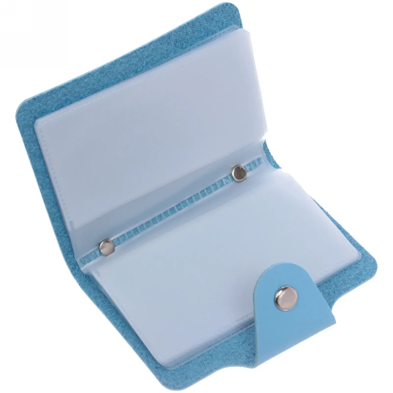 Эта визитница предназначена для хранения до 24 визиток, что позволяет вам всегда иметь под рукой важные контакты. Внутри находятся 12 прозрачных листов, которые защищают визитки от повреждений и загрязнений. Закрывается визитница на кнопку, что обеспечивает надежную фиксацию и защиту содержимого.