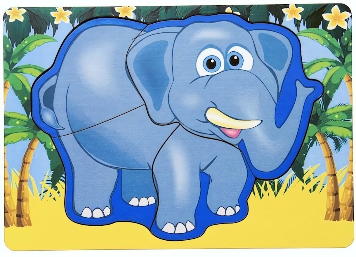 Погрузите вашего ребенка в увлекательный мир дикой природы с многослойным вкладышем 'Африканские животные'. Этот яркий и красочный пазл не только развлекает, но и обучает, помогая детям развивать мелкую моторику и логическое мышление. Слон, изображенный на фоне тропических растений, станет отличным помощником в обучении и игре.