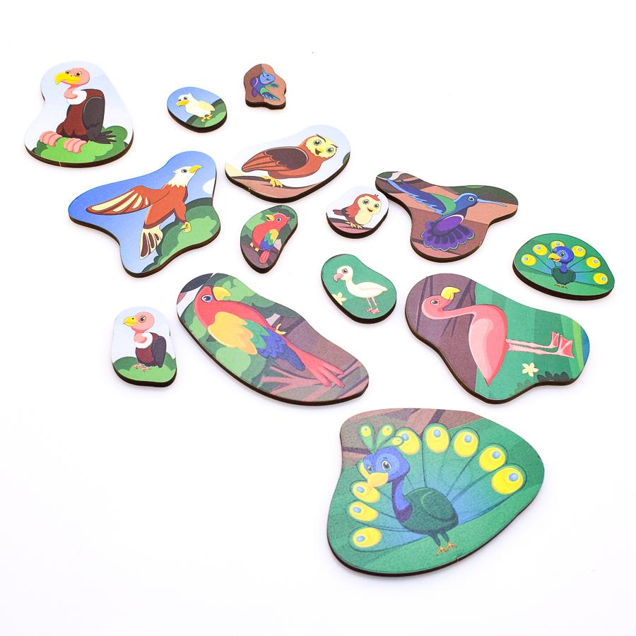 Деревянный пазл-вкладыш «Птицы», многоуровневый, развивающий, для детей от 3 лет
