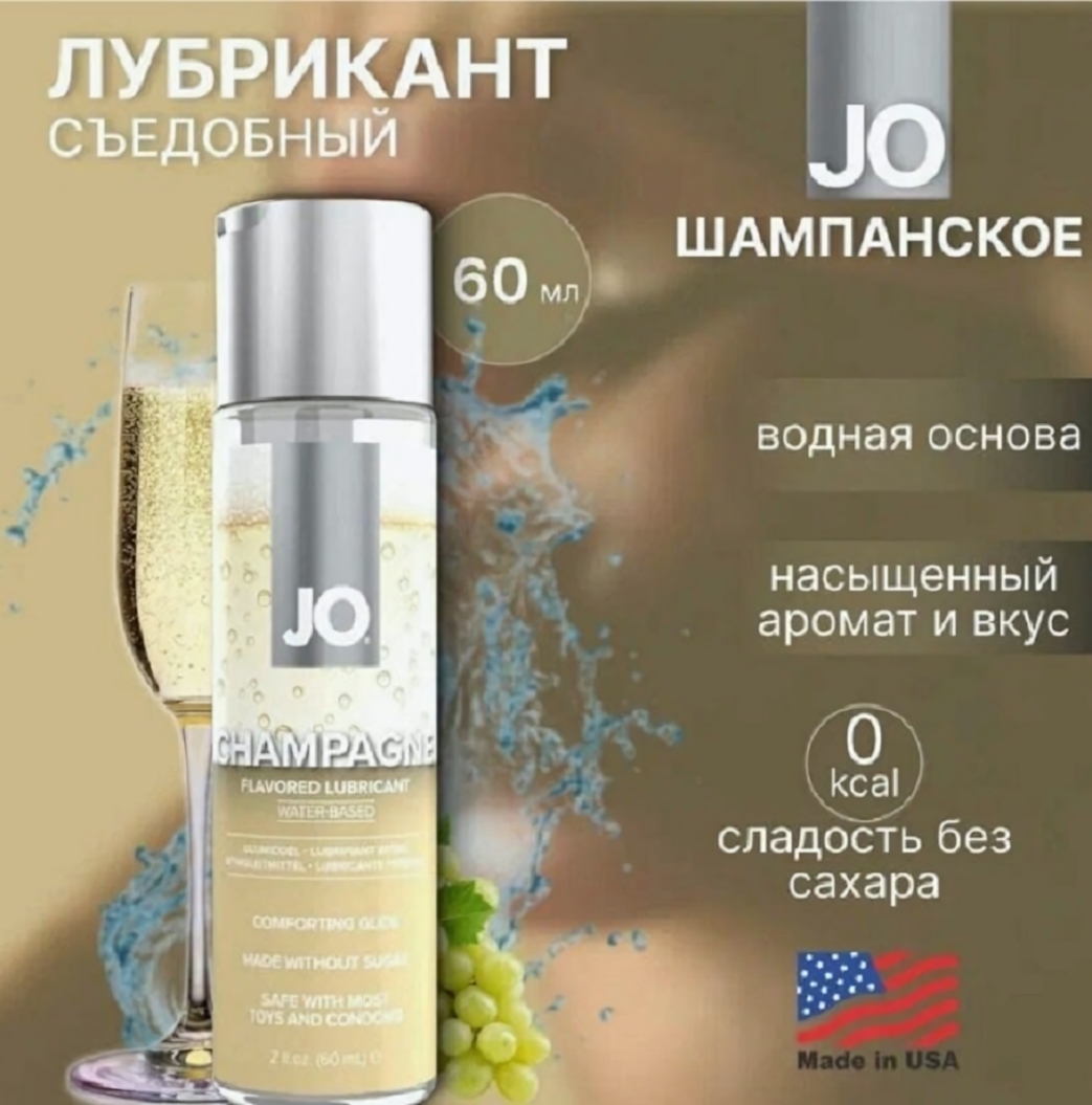 Добавьте игривости в интимную близость с съедобным лубрикантом JO Champagne. Его нежный вкус и аромат создают особую атмосферу романтики.