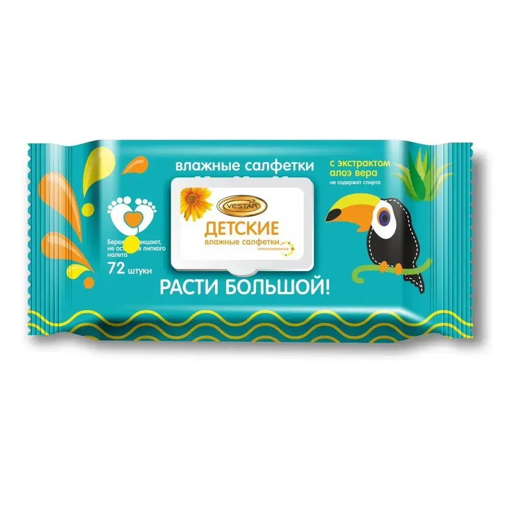 Влажные салфетки детские с алоэ вера, 72 шт, пластиковый клапан, без спирта