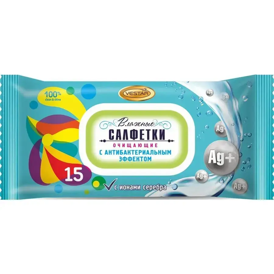 Эти влажные салфетки Vestar станут вашим надежным помощником в поддержании гигиены. Благодаря антибактериальной формуле с ионами серебра они эффективно очищают поверхности, устраняя до 99% бактерий.