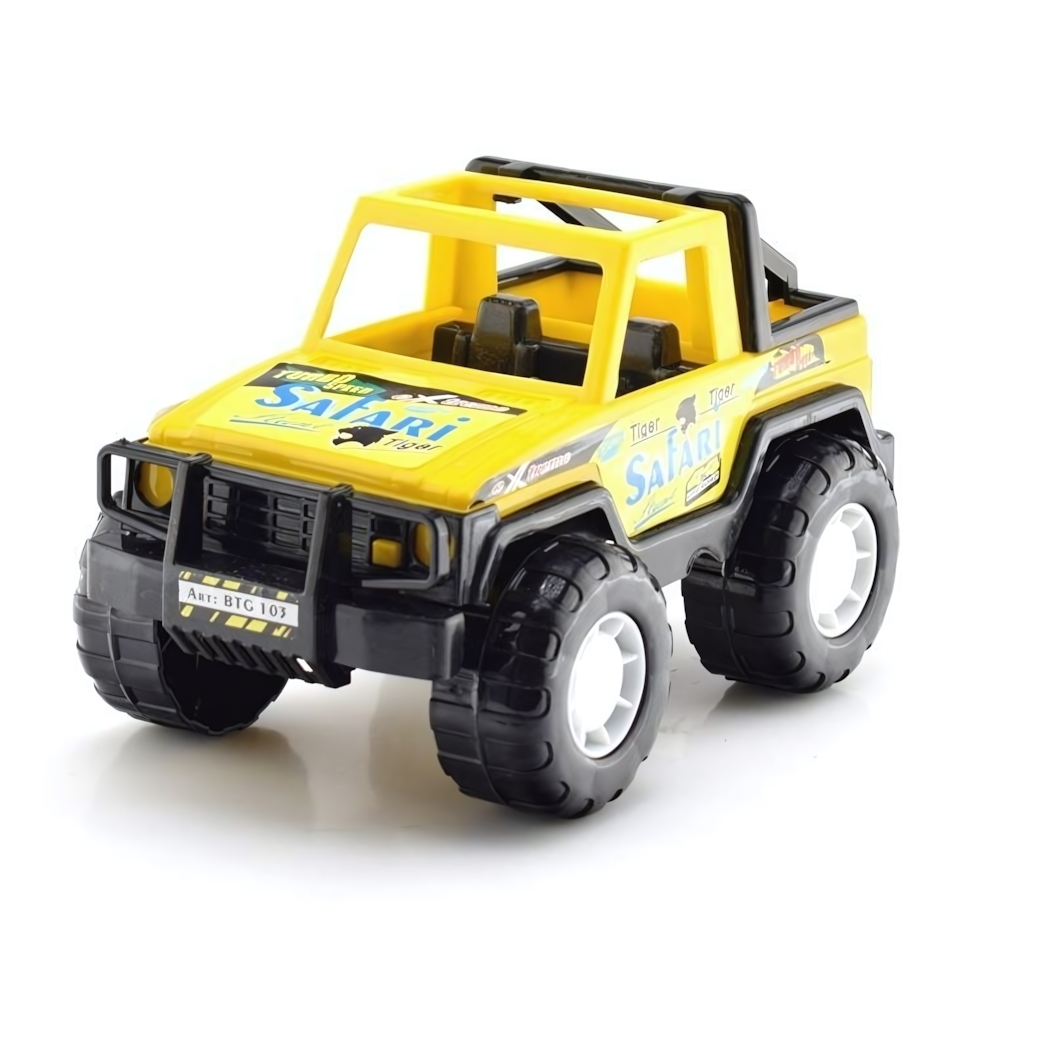 Этот яркий джип "SAFARI" станет любимой игрушкой вашего ребенка и подарит часы увлекательной игры. Его стильный дизайн с элементами тигра и надписями пробуждает фантазию.