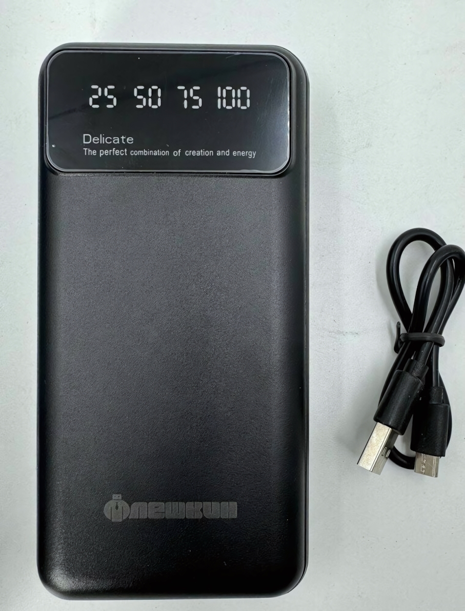 Аккумулятор выполнен из прочного матового пластика, что обеспечивает его долговечность и защиту от повреждений. Четыре цифровых индикатора на корпусе показывают уровень заряда, что позволяет вам всегда быть в курсе состояния аккумулятора. Размеры устройства компактны, что позволяет легко помещать его в сумку или карман.