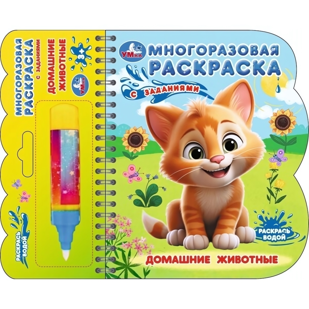 Многоразовая водная раскраска 'Домашние животные' от бренда Умка — это увлекательный способ занять ребёнка полезным досугом. Просто наполните маркер водой и раскрашивайте картинки снова и снова!