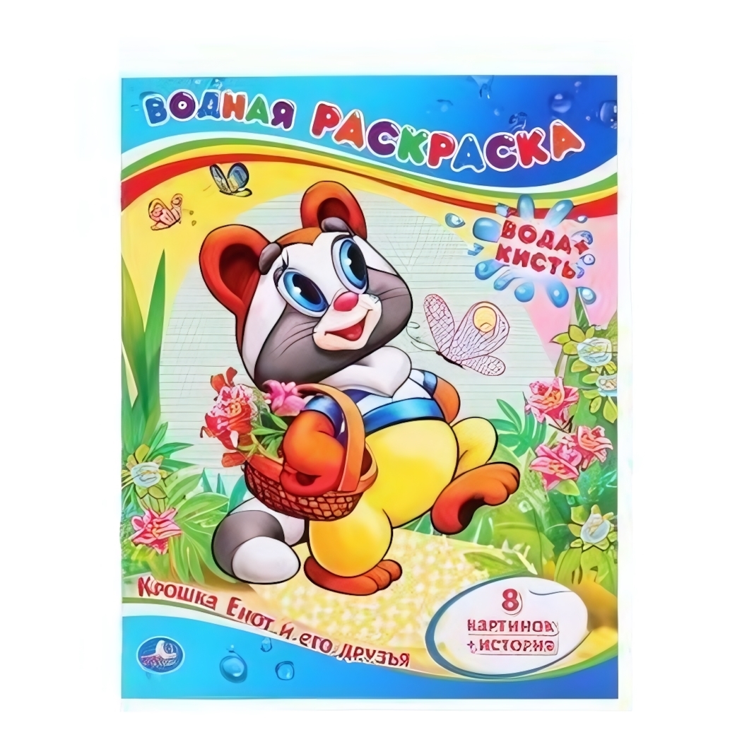 Водная раскраска 'Крошка Енот', 8 картинок, офсетная бумага, 200х250мм