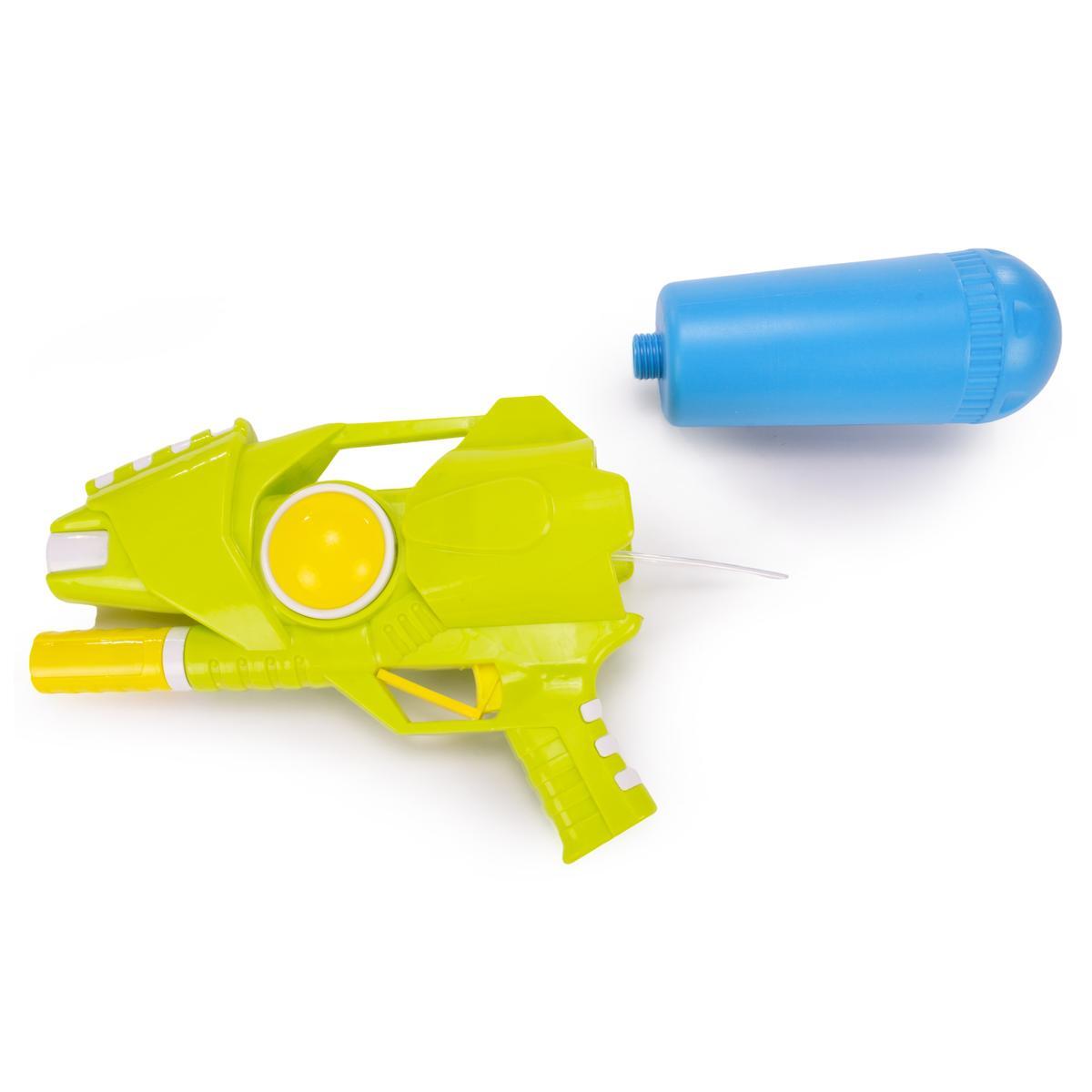 Открутите синюю крышку, наполните резервуар водой через специальное отверстие и закрутите обратно. Нажмите жёлтую кнопку на корпусе, чтобы начать стрельбу. Идеально подходит для игр во дворе, на пляже или даче.