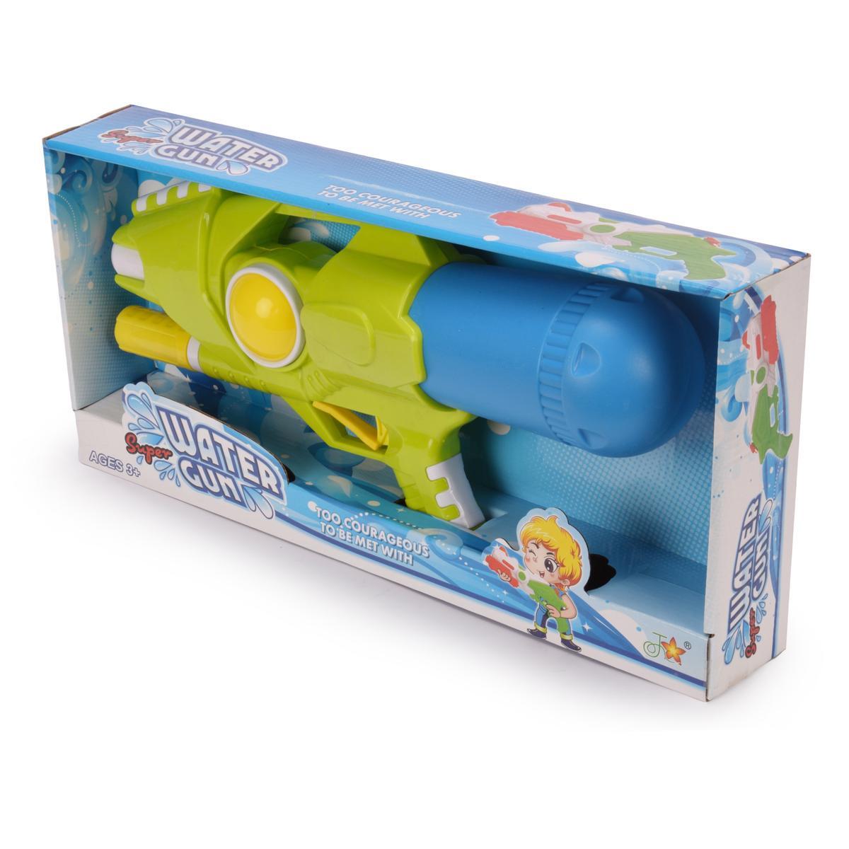 Водный пистолет детский, 30 см, пластик, зелено-синий, резервуар для воды, ручной насос