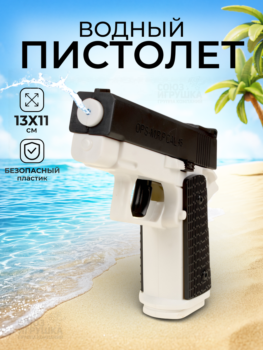 Водный пистолет детский, 13 см, черный/белый, пластик, удобный хват
