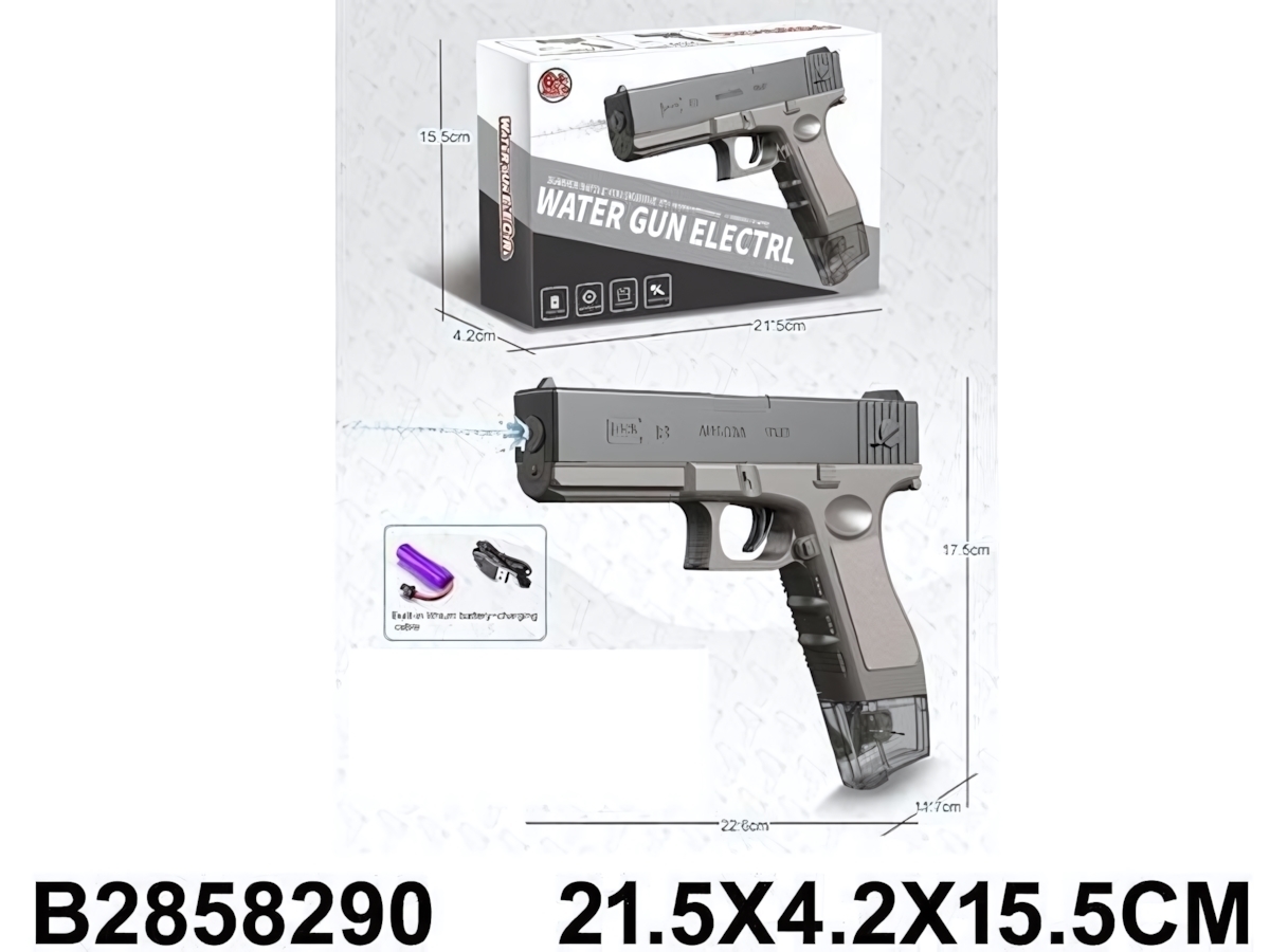Водный пистолет 'WATER GUN ELECTRL', 21см, USB-зарядка, серый/черный