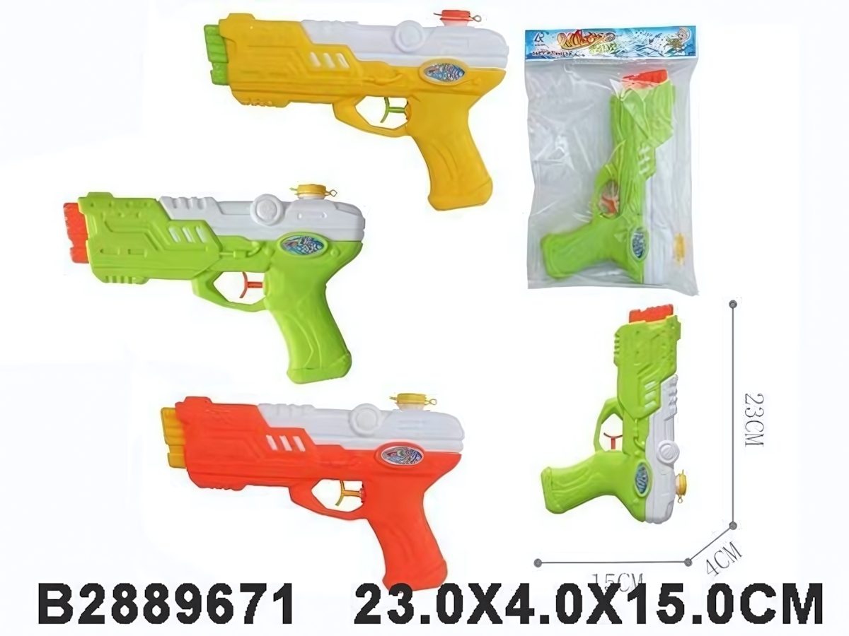 Размер упаковки 23×15×3.7 см делает хранение и транспортировку максимально удобными. Пистолет полностью готов к использованию — просто добавьте воды и начинайте игру!