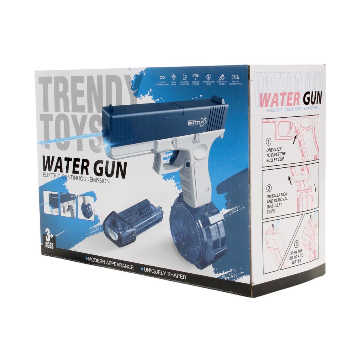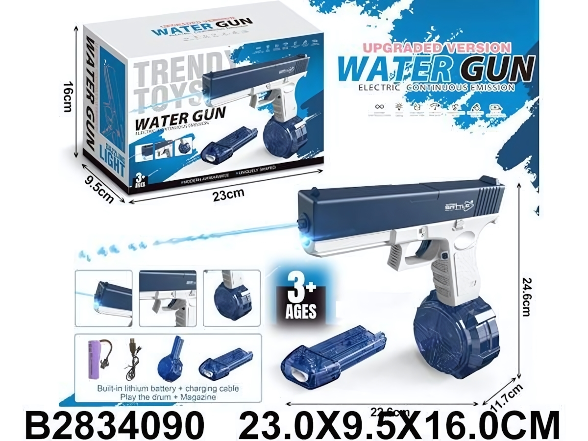 Водный пистолет оснащен встроенным литиевым аккумулятором, который можно легко зарядить через USB. Это делает его удобным в использовании и позволяет избежать постоянной замены батареек. Пистолет подходит для детей от 3 лет и старше, что делает его отличным выбором для семейных игр на свежем воздухе. Просто заполните резервуар объемом 500 мл водой, и вы готовы к бою!