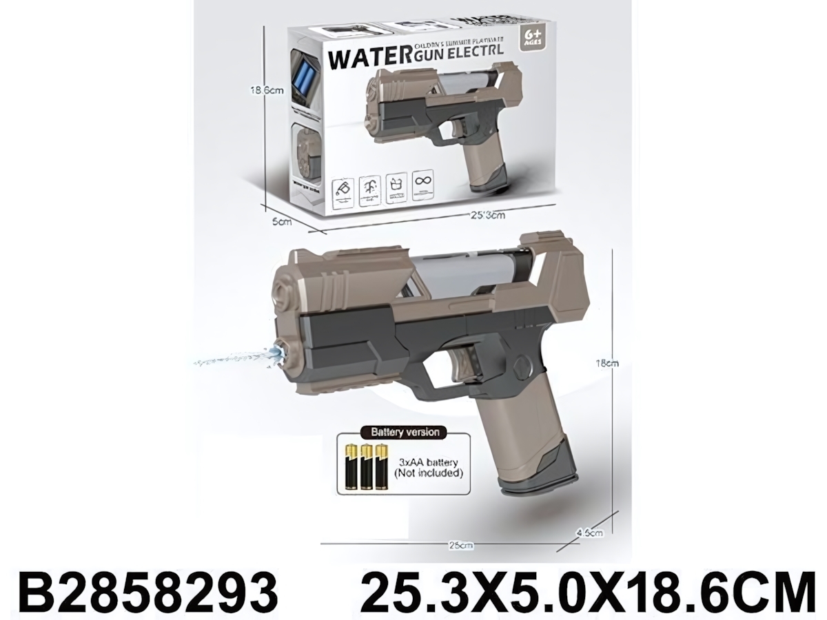 Погрузитесь в мир веселья и приключений с нашим водным пистолетом длиной 25 см! Этот электрический пистолет станет идеальным спутником для жарких летних дней, обеспечивая непрерывную подачу воды и захватывающие моменты игры. Он подходит для детей от 6 лет и гарантирует массу положительных эмоций.