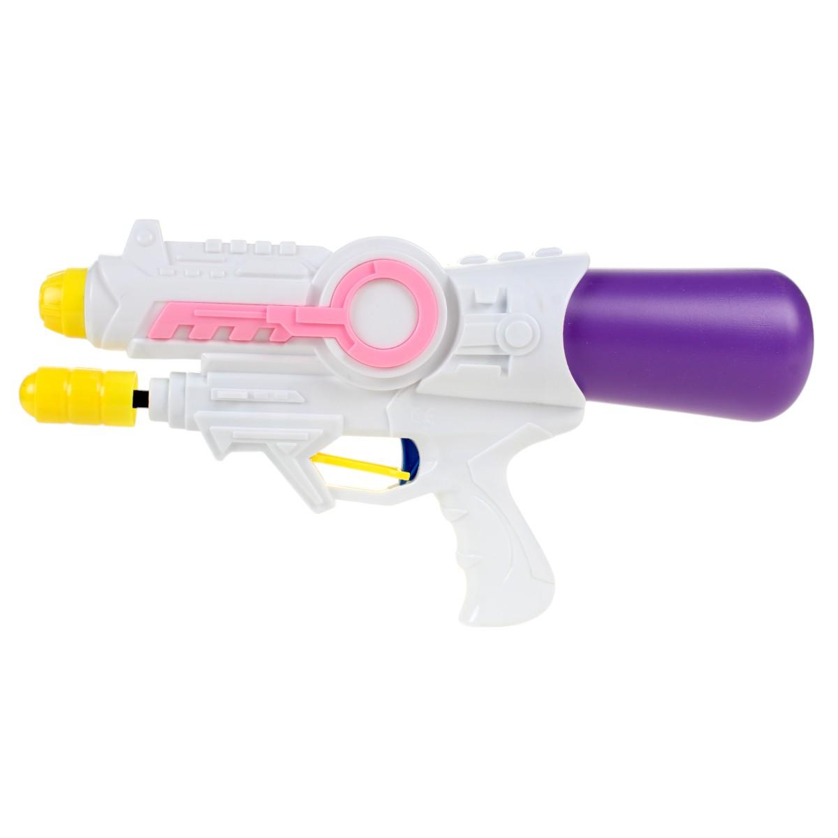 Размеры 35,5 × 18,5 × 8 см идеально подходят для детей от 3 лет. Гладкие закругленные края исключают травмы, а кнопка подачи воды срабатывает при легком нажатии. Пистолет полностью готов к использованию — просто наполните резервуар водой через широкое горлышко.