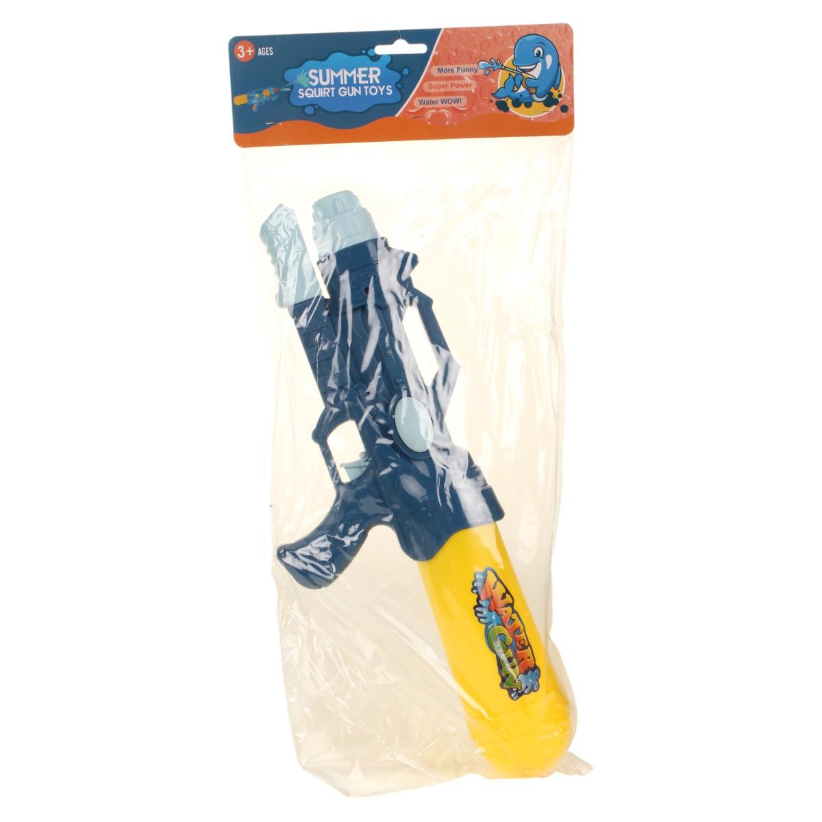 Размер упаковки: 47×17×8 см. Лёгкий вес (менее 500 г) позволяет брать пистолет на прогулки и пляж. Полностью безопасная конструкция без острых углов рекомендована для детей от 3 лет. Яркий дизайн с надписью «WATER GUN» создаёт атмосферу настоящих водных сражений.