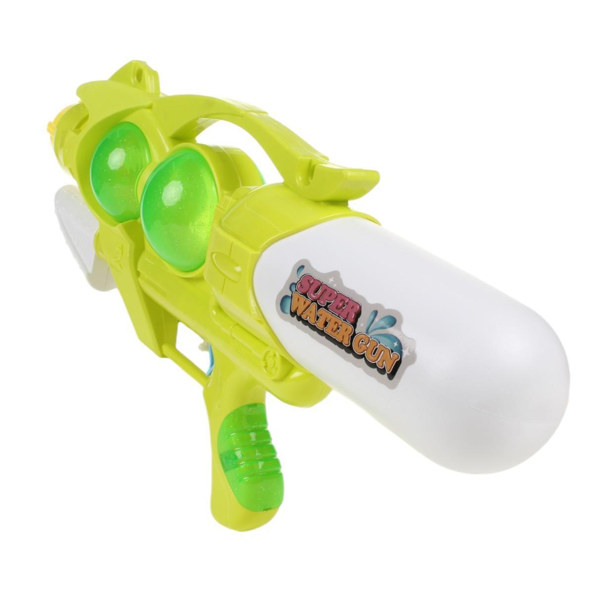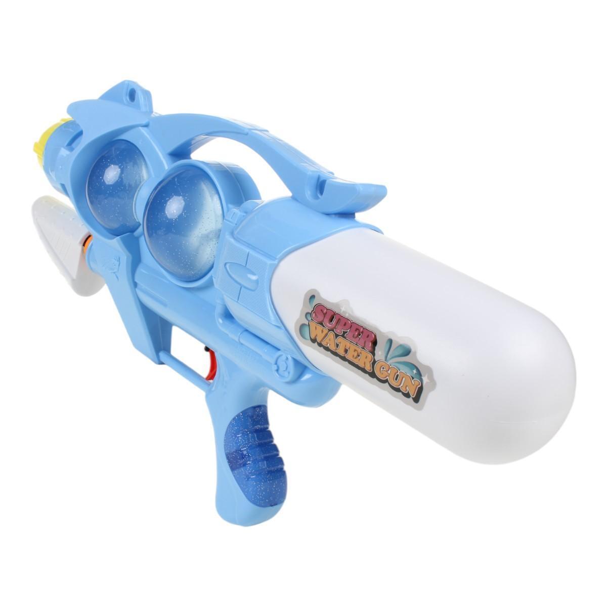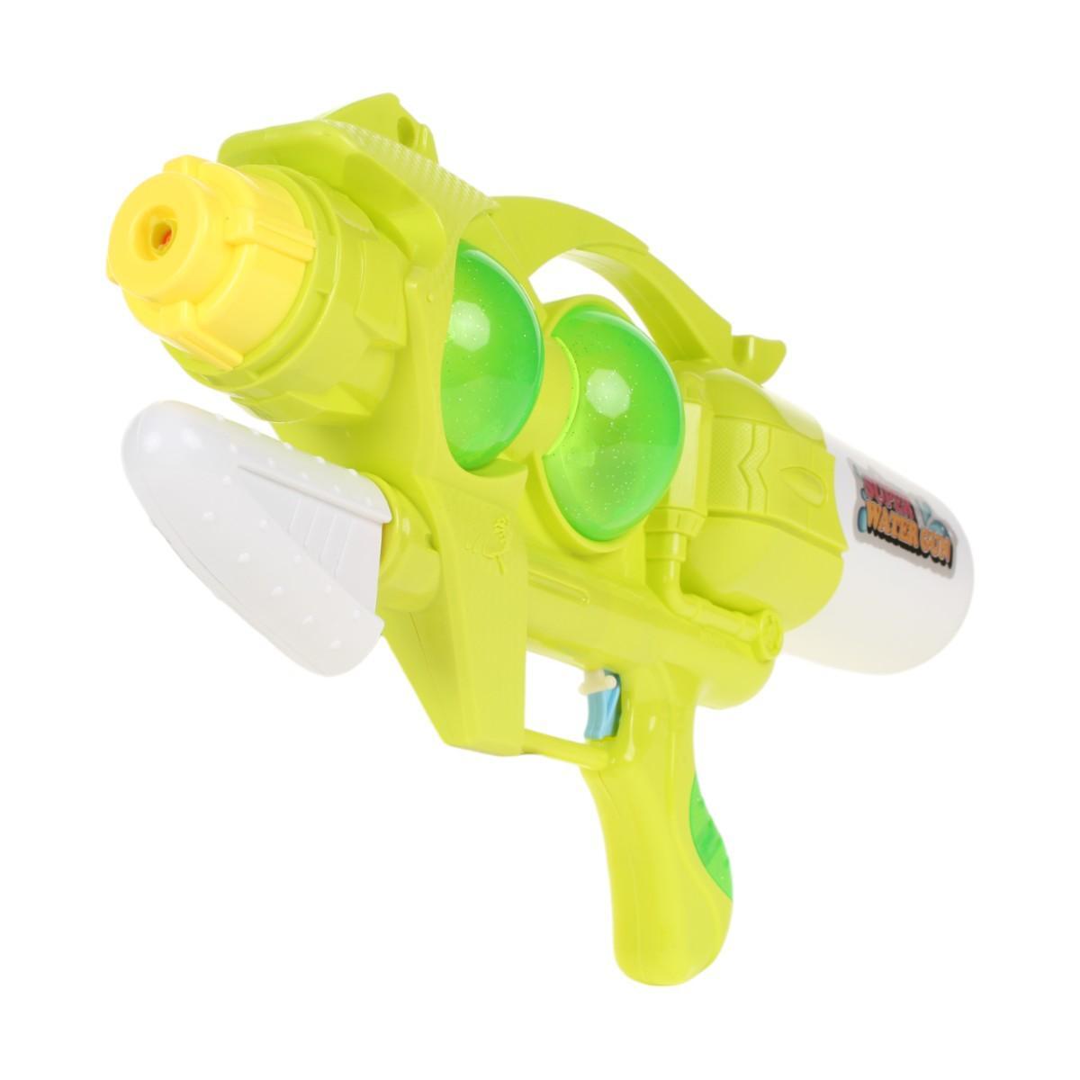 Габариты 48,5 × 25 × 9 см оптимальны для детей от 3 лет — пистолет достаточно большой для эффектных брызг, но не перегружает руку. Изготовлен из прочного пластика, безопасного для детских игр. Два прозрачных резервуара позволяют контролировать уровень воды, а оригинальный дизайн с элементами «SUPER WATER GUN» выделит игрушку среди других.