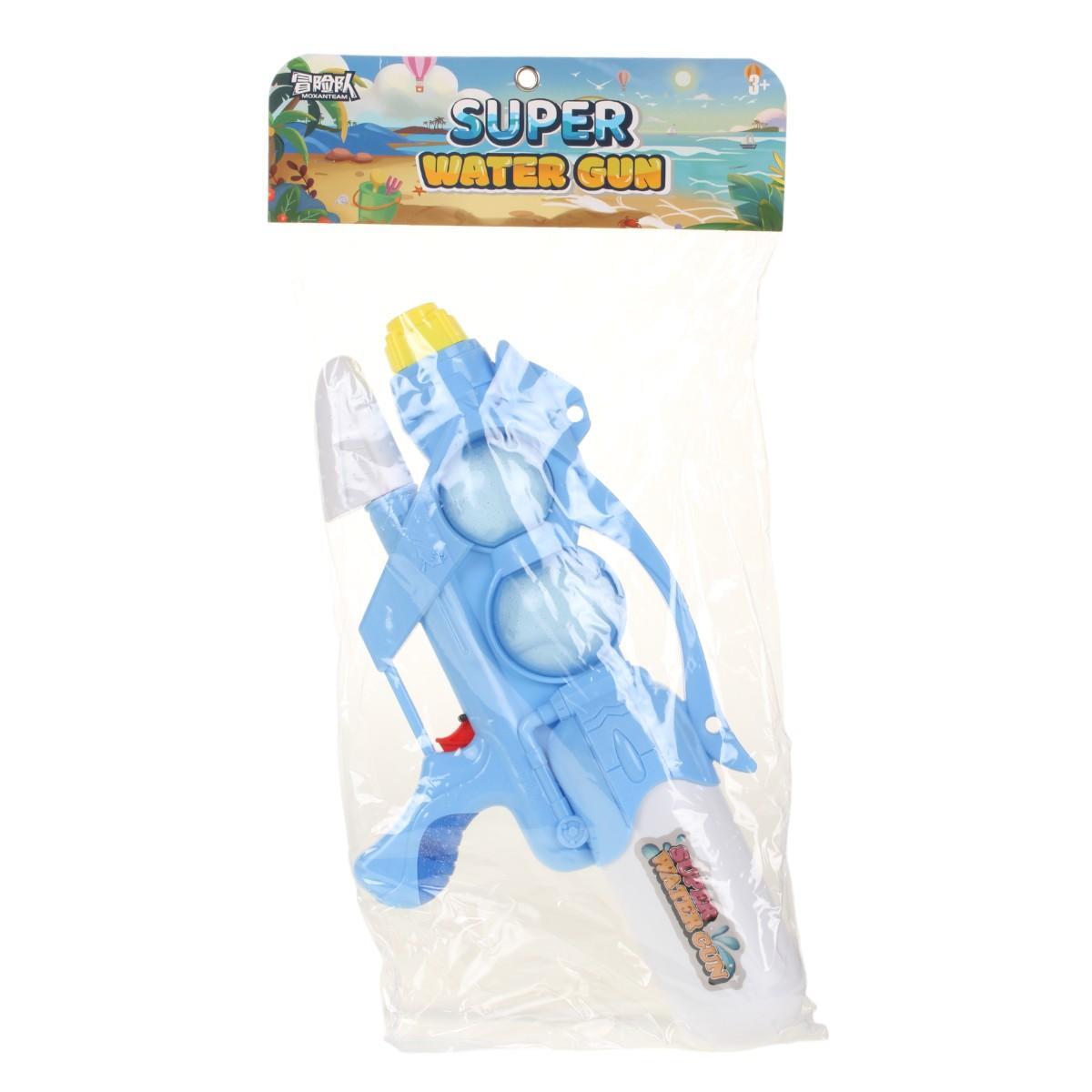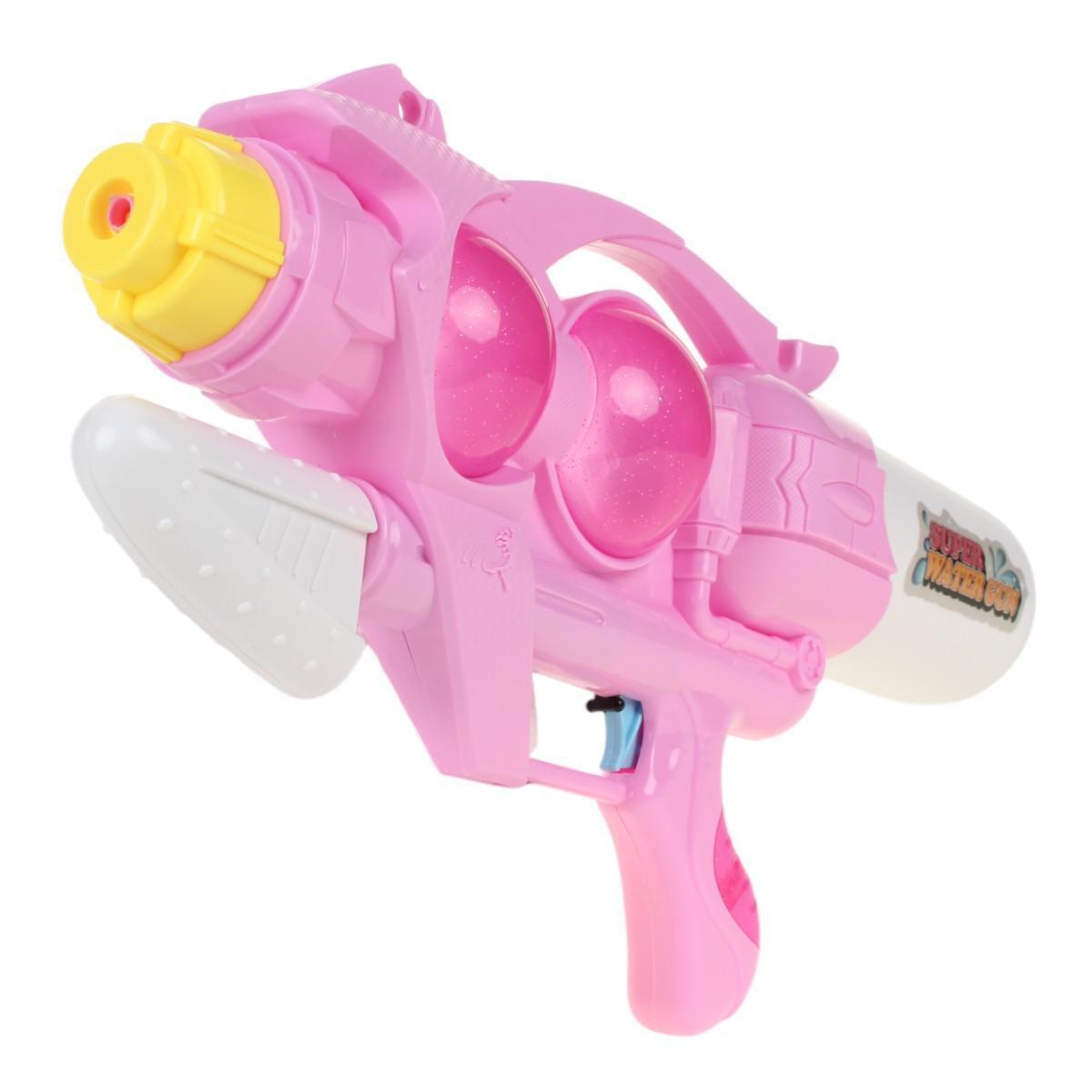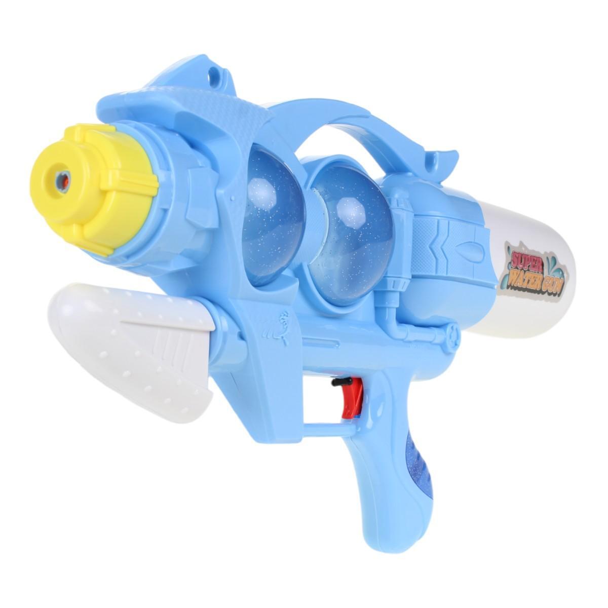 Габариты 48,5 × 25 × 9 см оптимальны для детей от 3 лет — пистолет достаточно большой для эффектных брызг, но не перегружает руку. Изготовлен из прочного пластика, безопасного для детских игр. Два прозрачных резервуара позволяют контролировать уровень воды, а оригинальный дизайн с элементами «SUPER WATER GUN» выделит игрушку среди других.