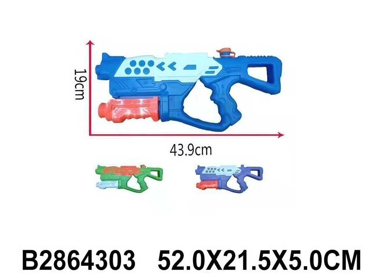 Водный пистолет-бластер 52 см, 3 цвета (голубой, оранжевый, зеленый), помповый механизм, пластик