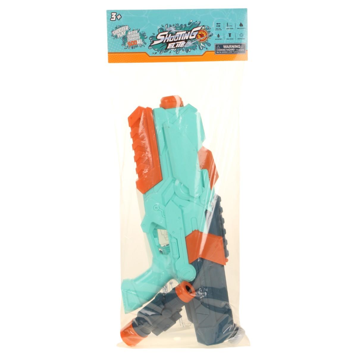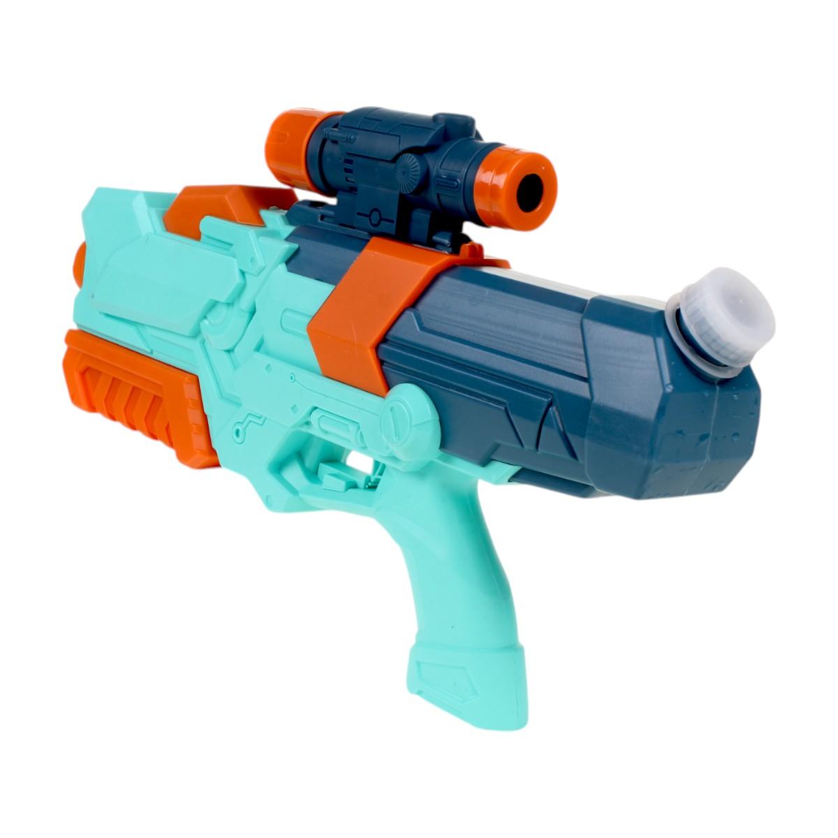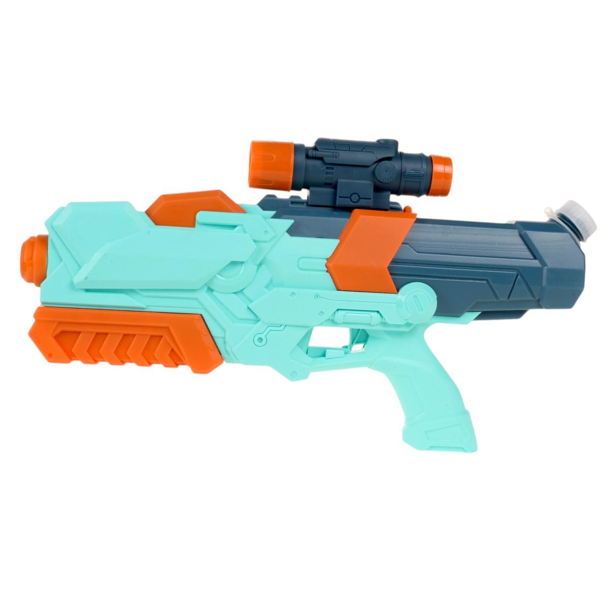 Этот водный бластер выполнен из прочного пластика, что обеспечивает его долговечность и надежность. Яркие цвета — бирюзовый, оранжевый и черный — делают его привлекательным для детей, а также способствуют развитию их воображения и креативности. С водным пистолетом ваш ребенок сможет не только развлекаться, но и развивать физическую активность, играя с друзьями на улице.