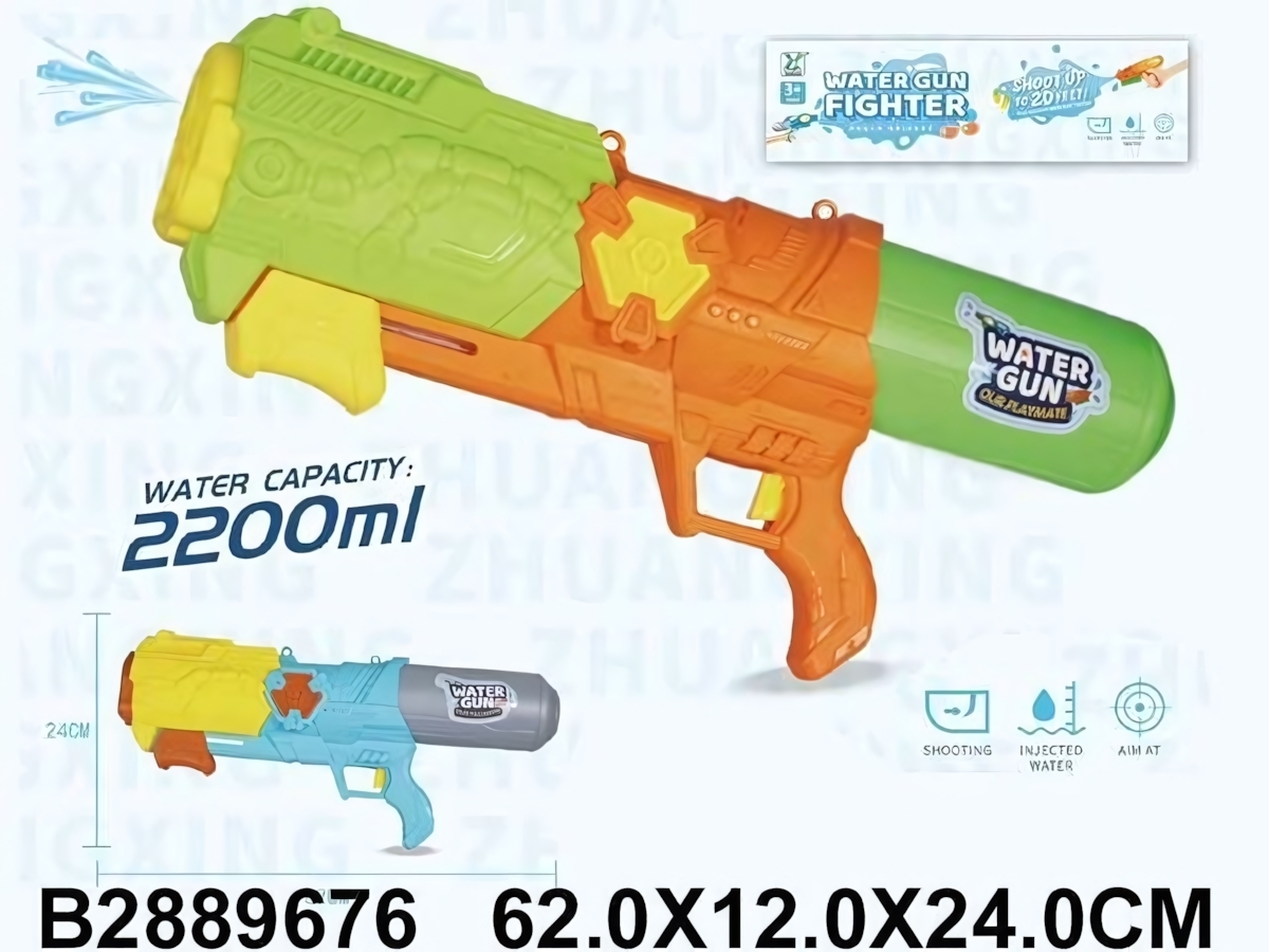 Водный пистолет 62см, объем 2200мл, помповый механизм, яркий дизайн