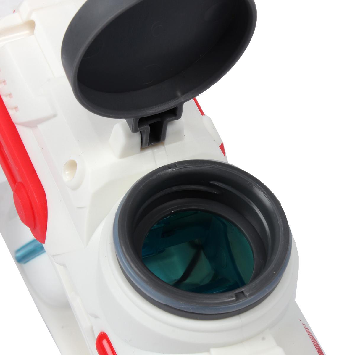 Размеры пистолета составляют 20 см в длину, 6,5 см в ширину и 16 см в высоту. Он легкий и удобный для удержания в руках, что позволяет детям легко управлять им во время игры. В комплекте также идет бутылка на 200 мл для удобного заполнения контейнера водой. Пистолет представлен в белом цвете с красными и синими элементами, что делает его стильным и привлекательным.