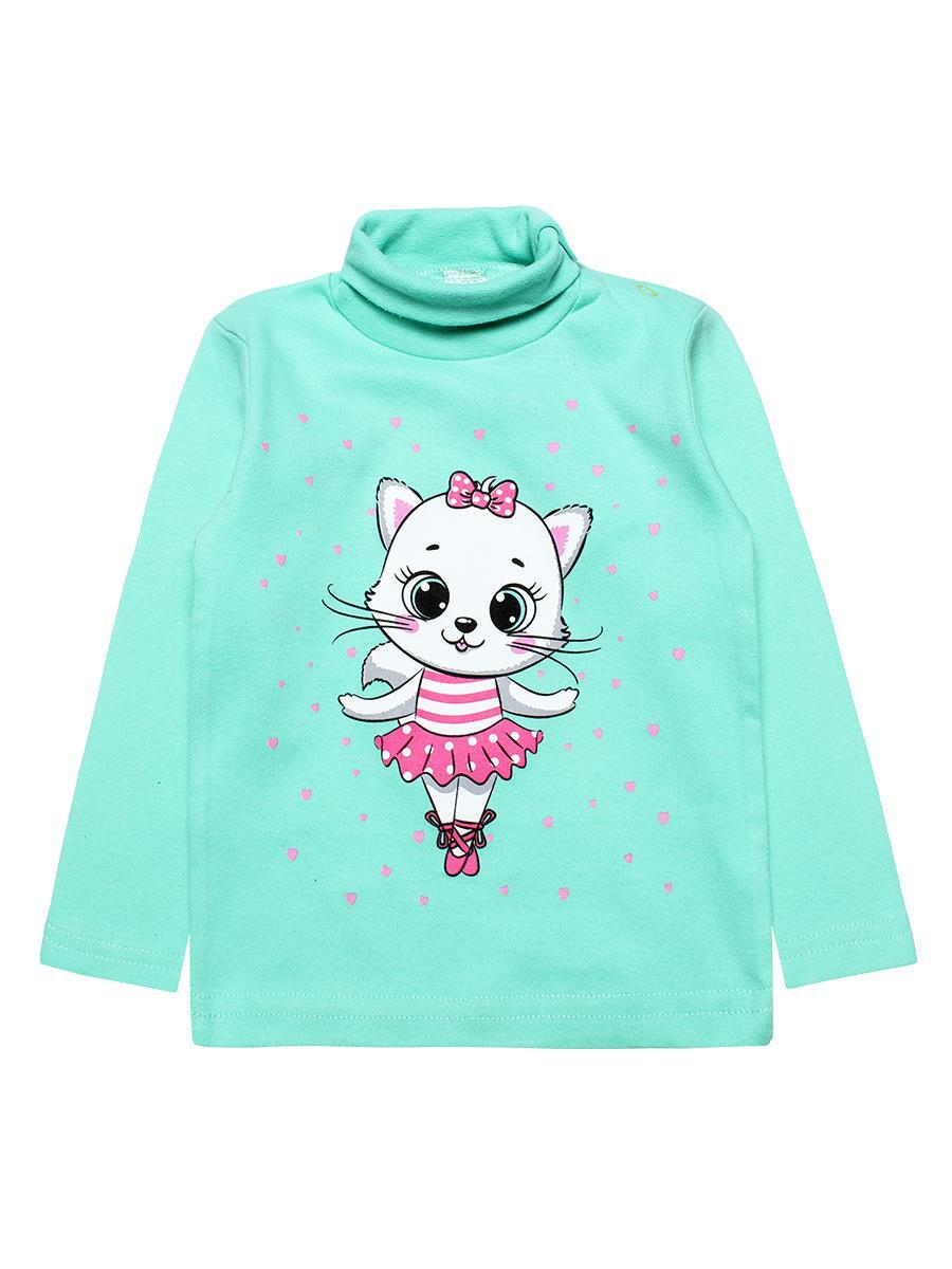 Размер 104 соответствует росту ребёнка 104 см. Мятный цвет универсален и сочетается с любыми вещами. Принт с забавной кошечкой добавит очарования образу вашей малышки.