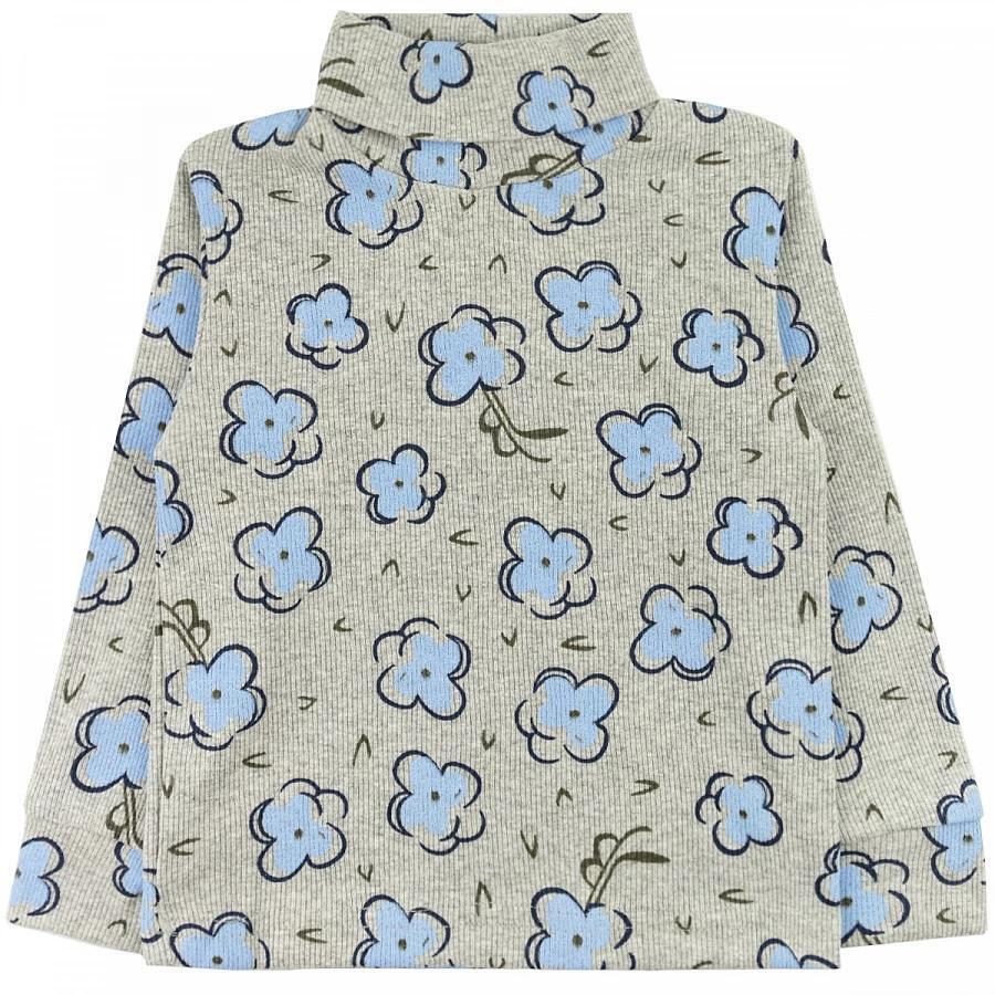 Водолазка детская с цветочным принтом, хлопок 95%, размер 92-98, серо-голубая
