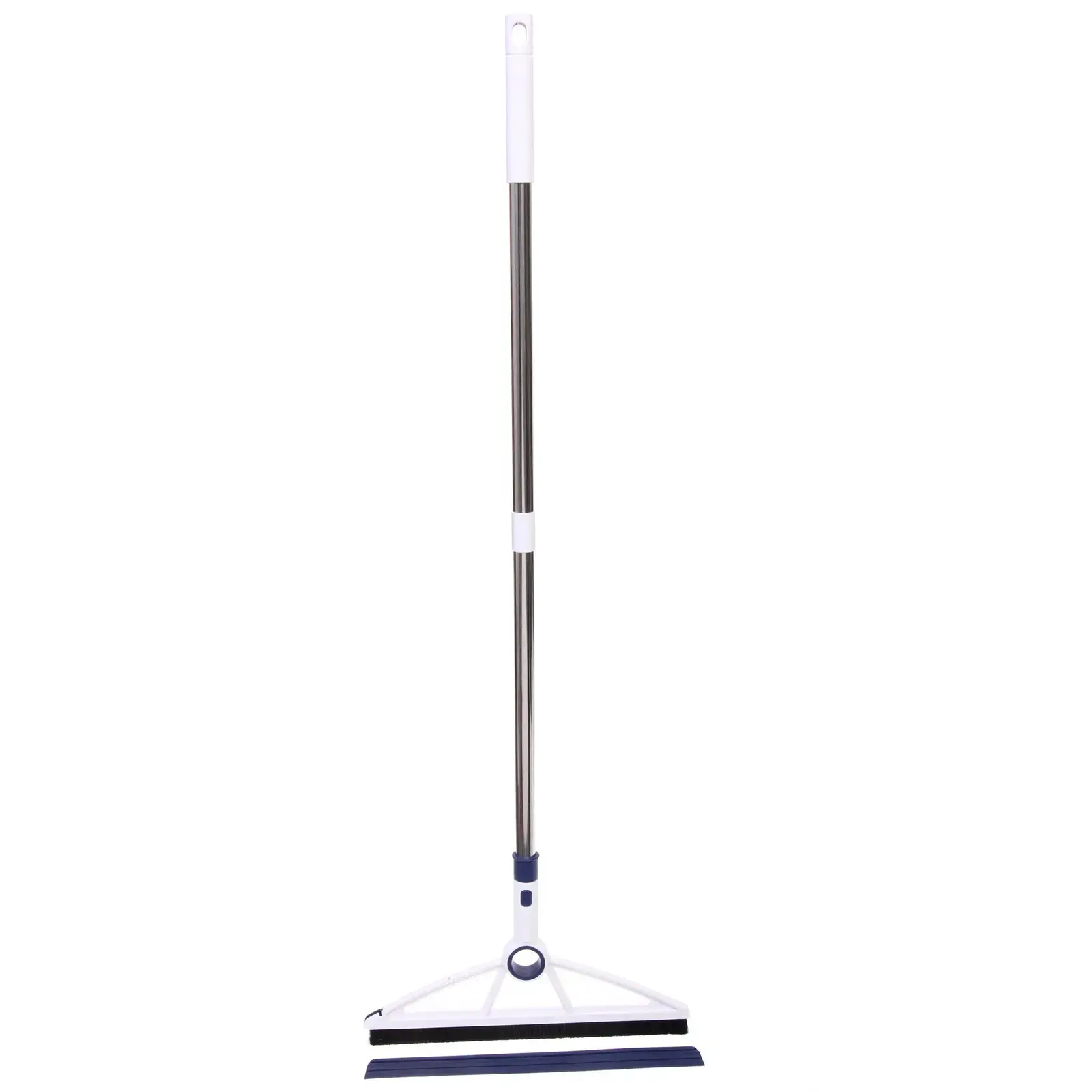 Рабочая часть шириной 30см выполнена в бело-синей цветовой гамме. Длина ручки подобрана для удобного использования как на уровне пола, так и на высоте. Резиновый элемент легко моется после использования.
