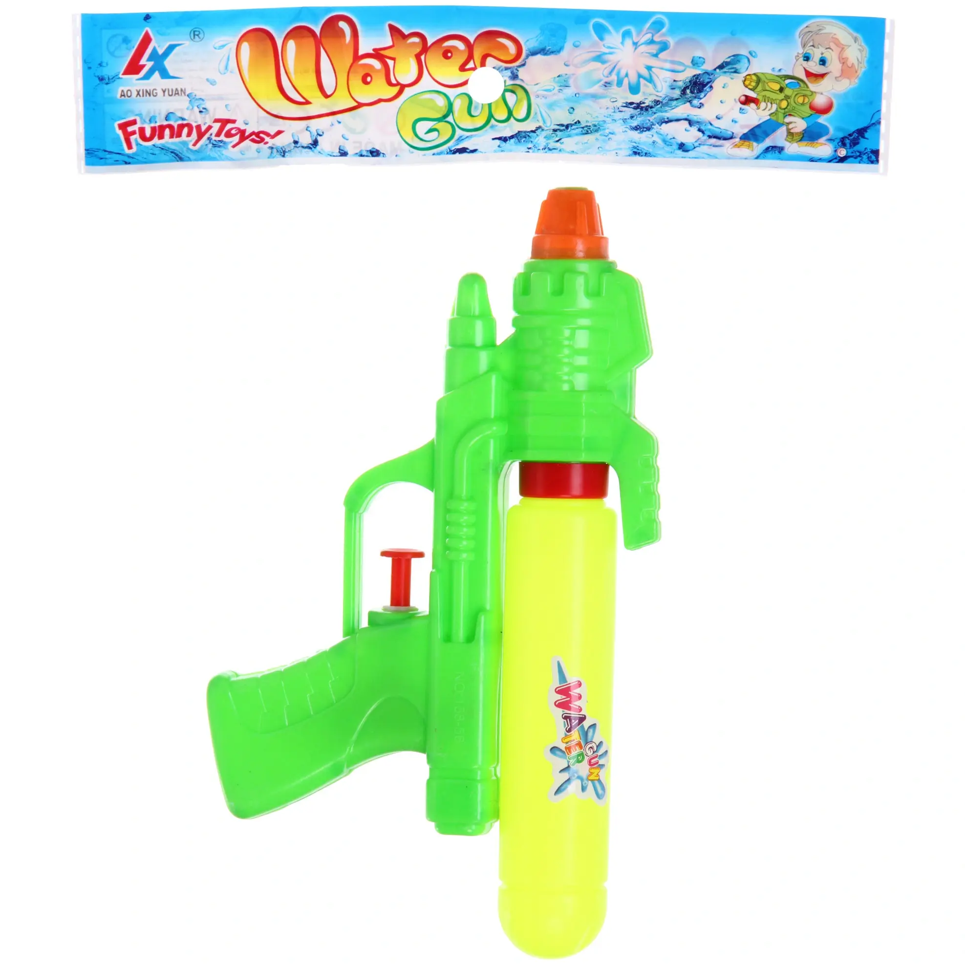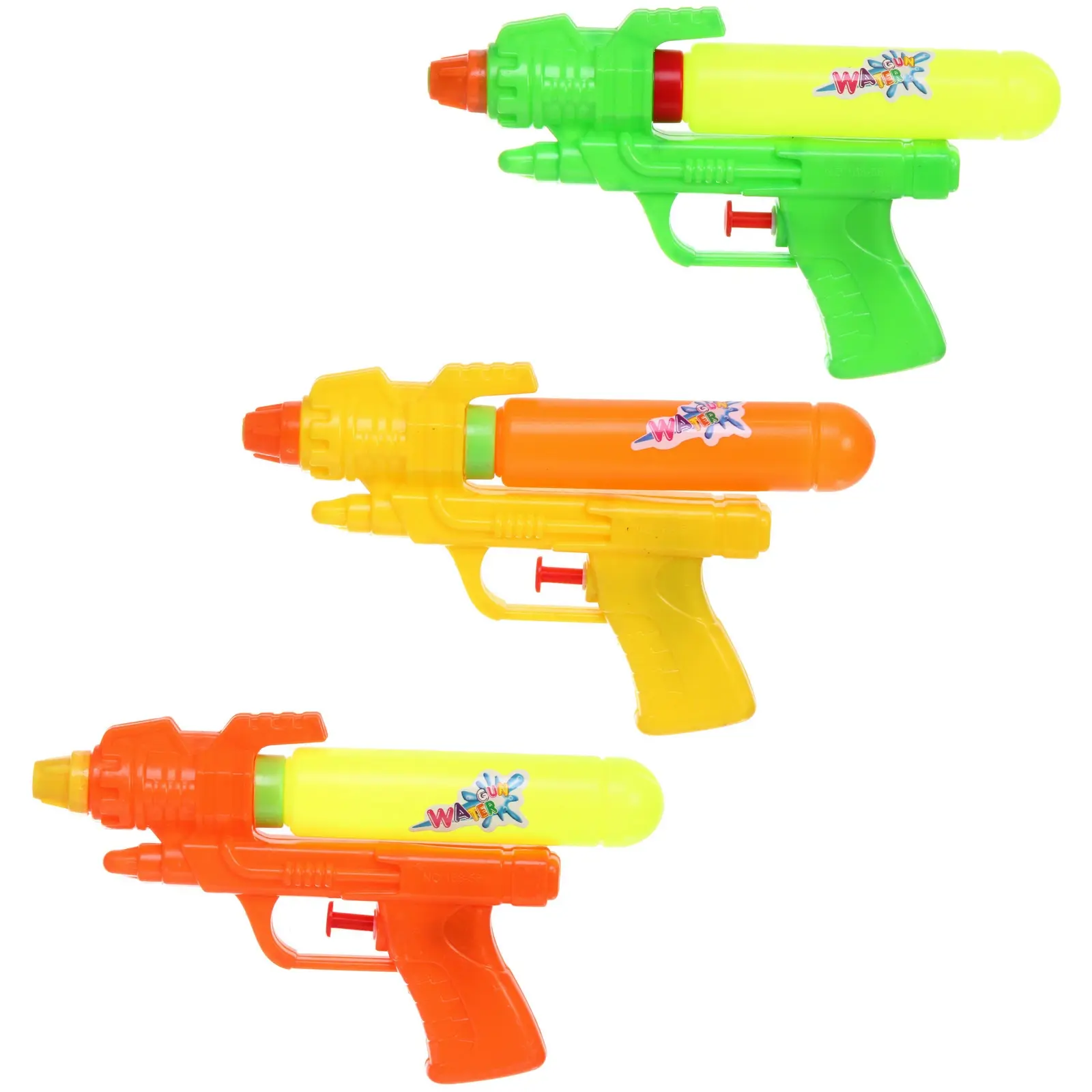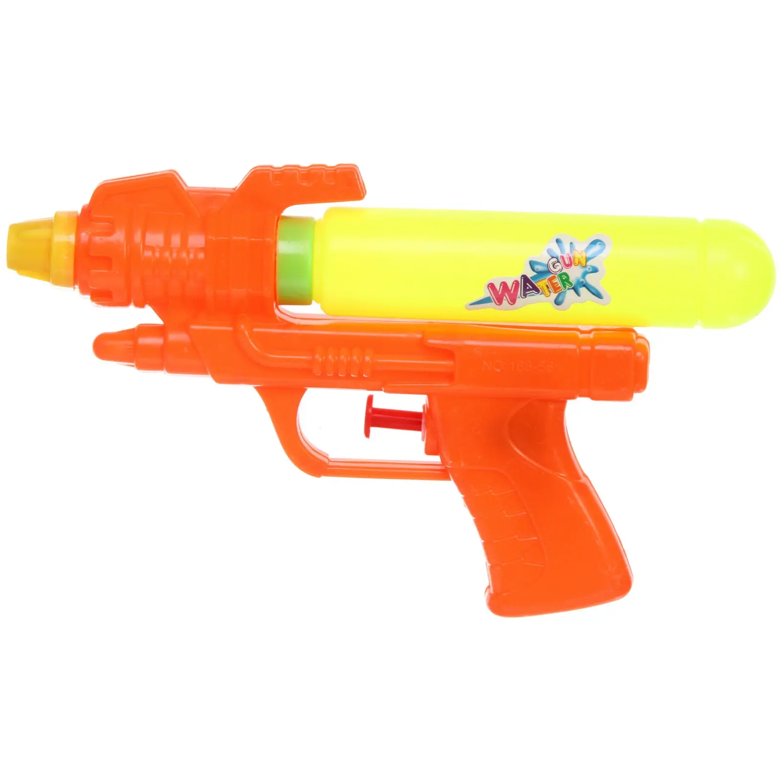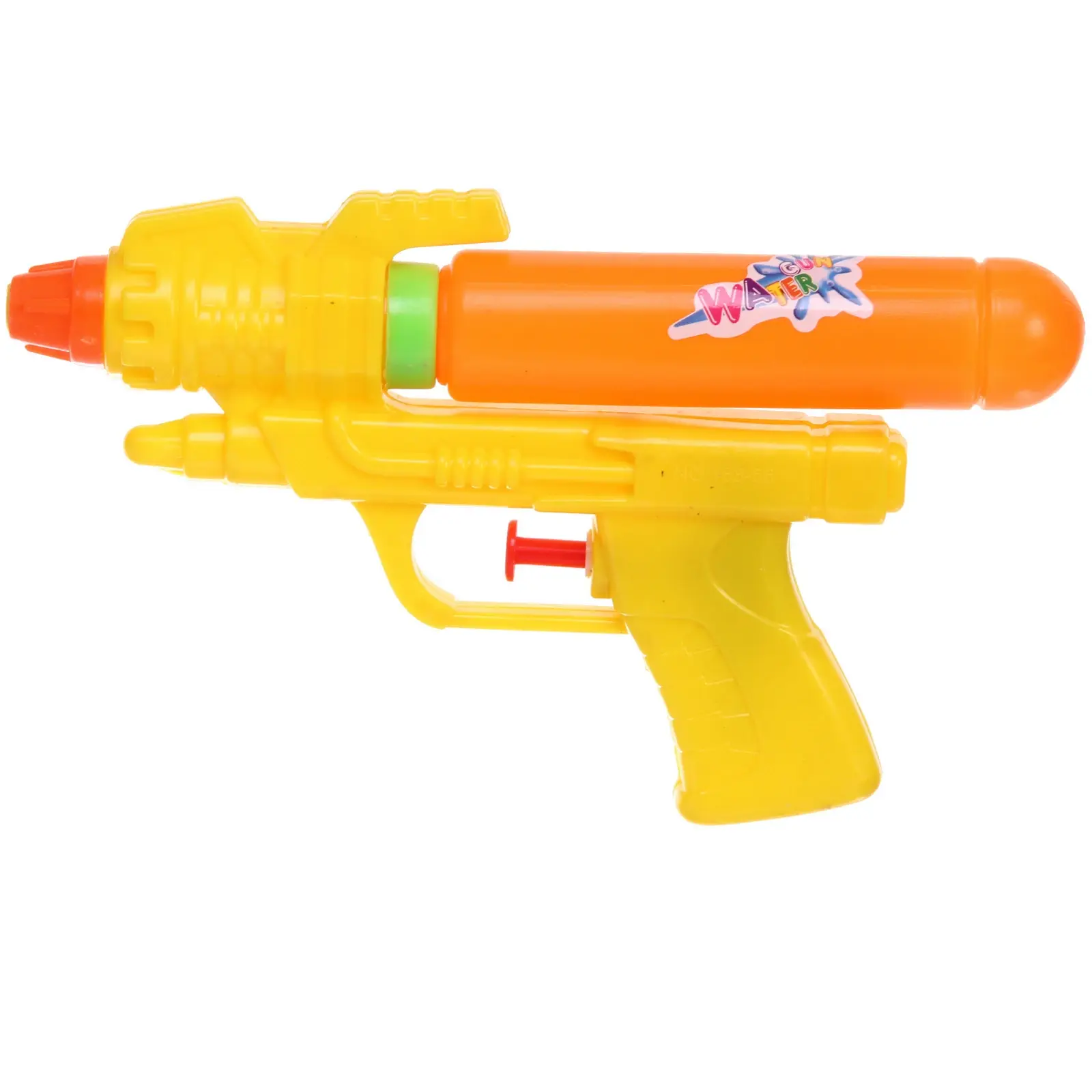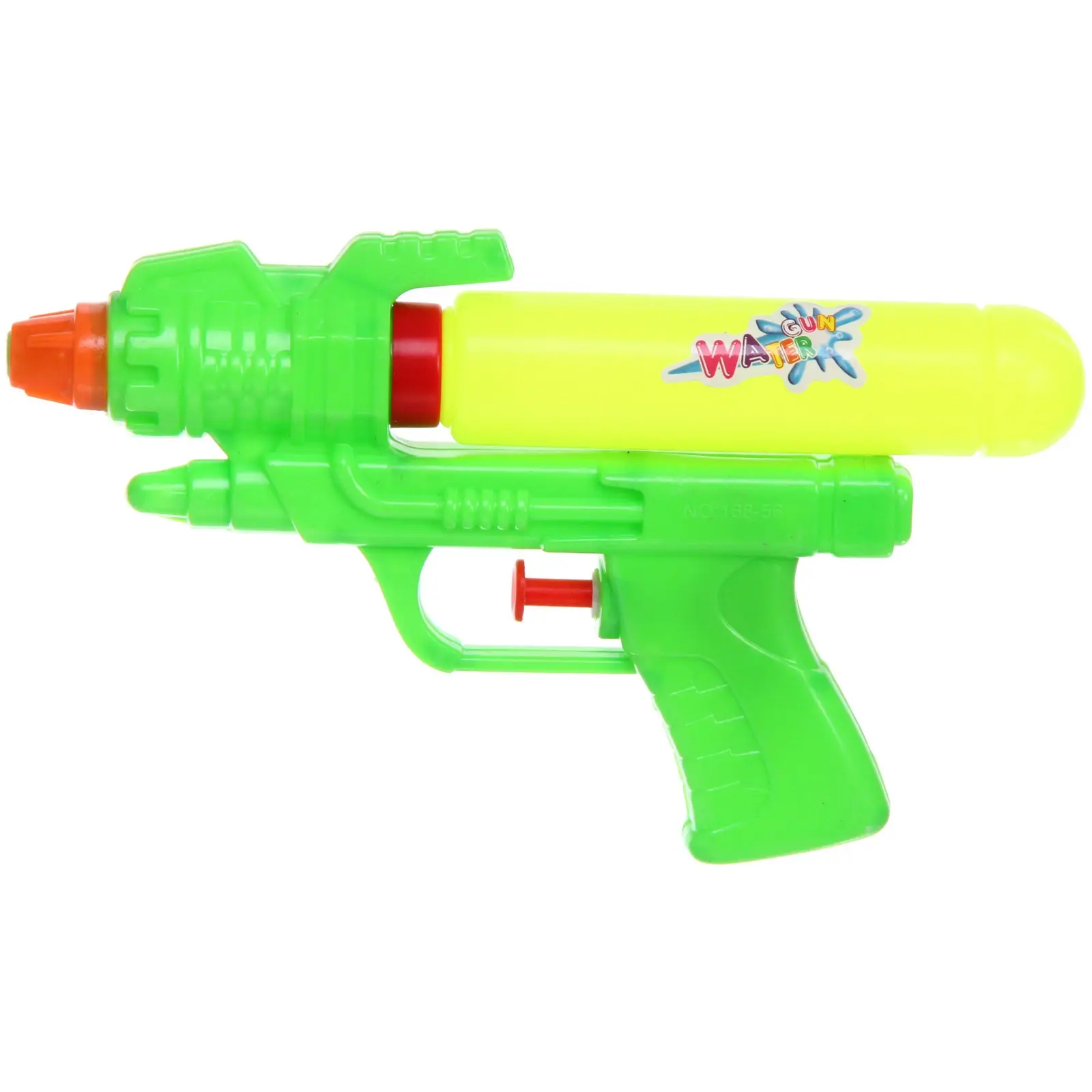 Пистолет изготовлен из прочного безопасного пластика, устойчивого к механическим повреждениям. Яркий дизайн с элементами 'WATER GUN' создает игровую атмосферу и привлекает внимание детей. Отгружается один товар, цвет определяется случайным образом из доступных вариантов: зеленый, оранжевый или желтый.