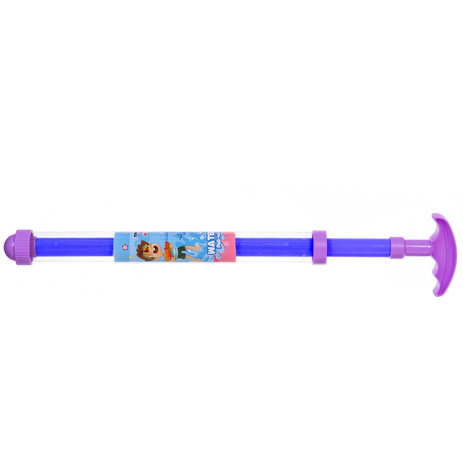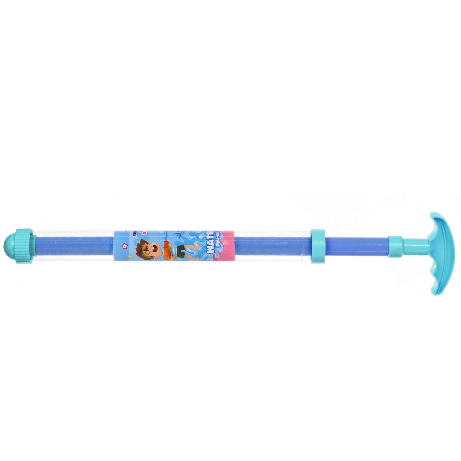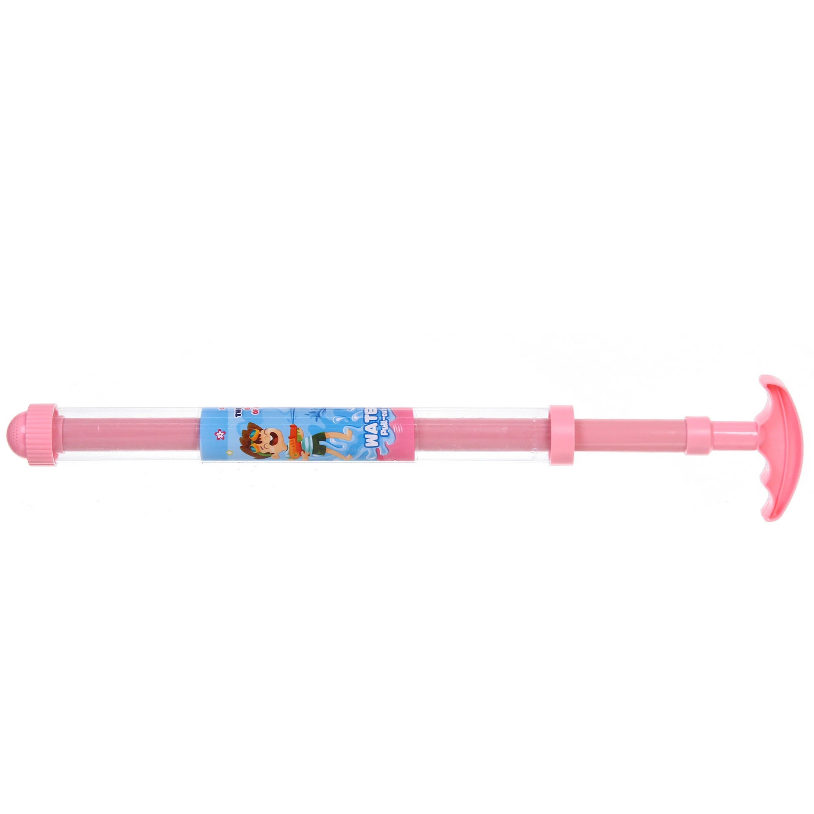 - Яркий дизайн и прозрачный корпус: Яркие цветные элементы (рукоятка, насадка, внутренний стержень) привлекают внимание детей. Прозрачный цилиндр позволяет видеть, сколько воды осталось, что добавляет игровому процессу наглядности.