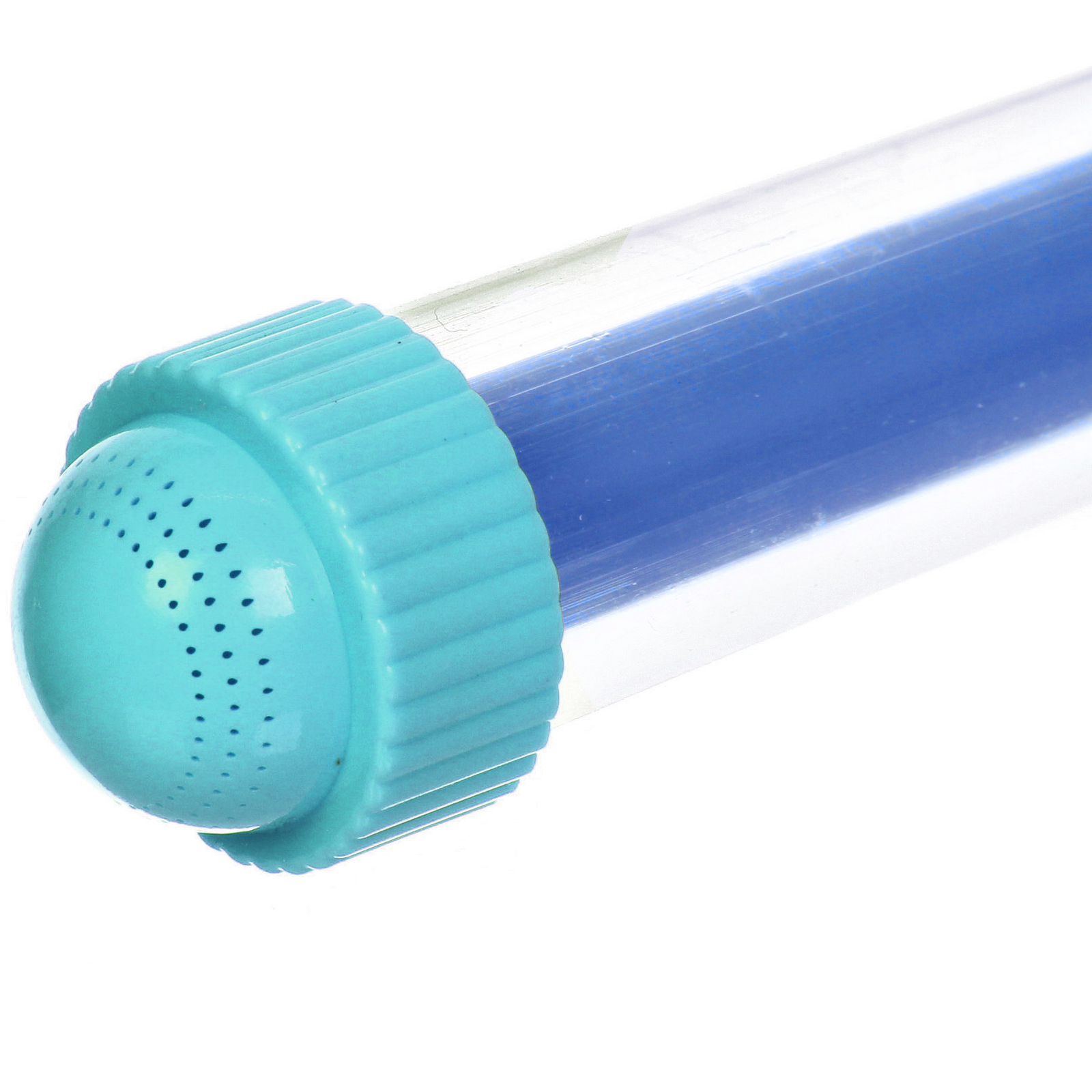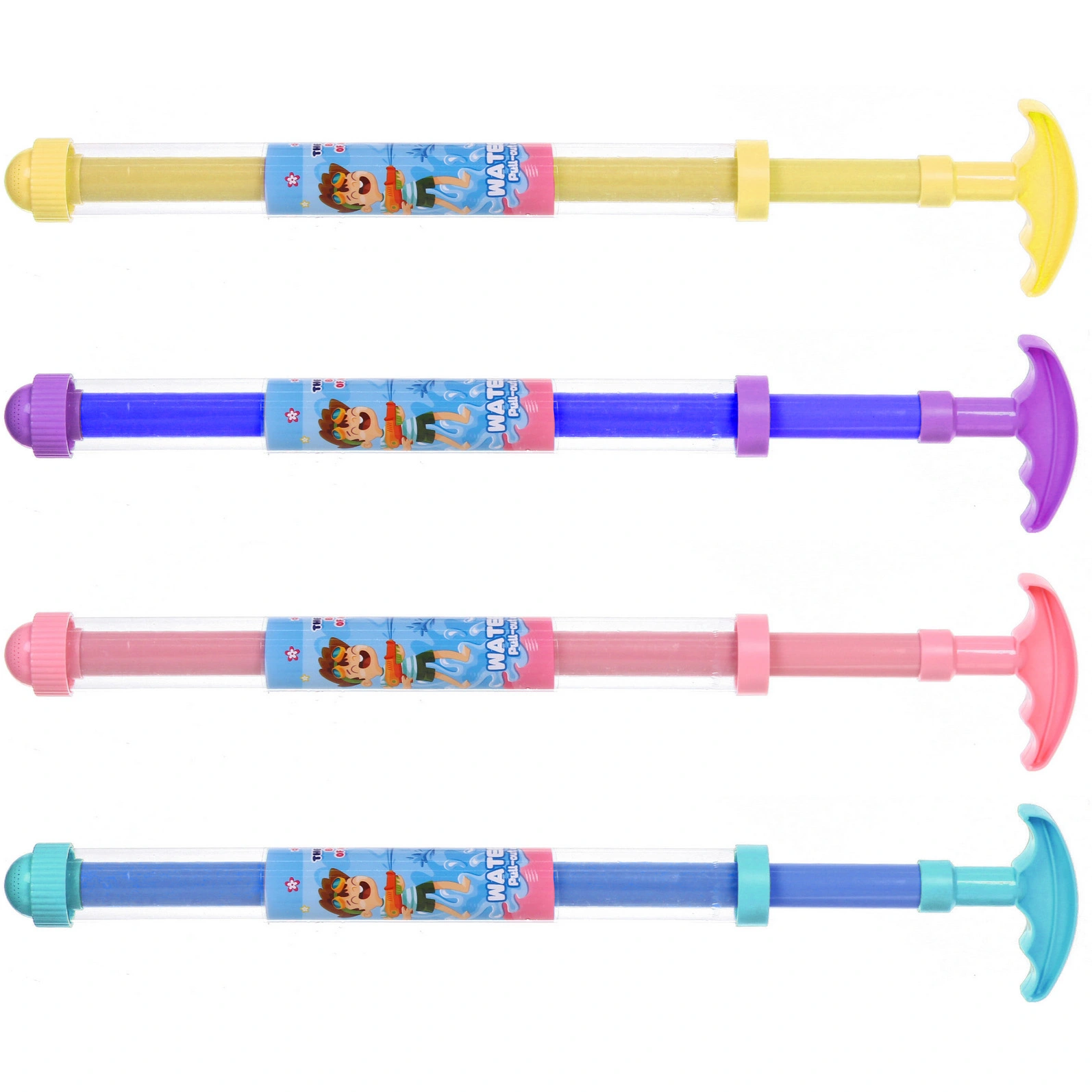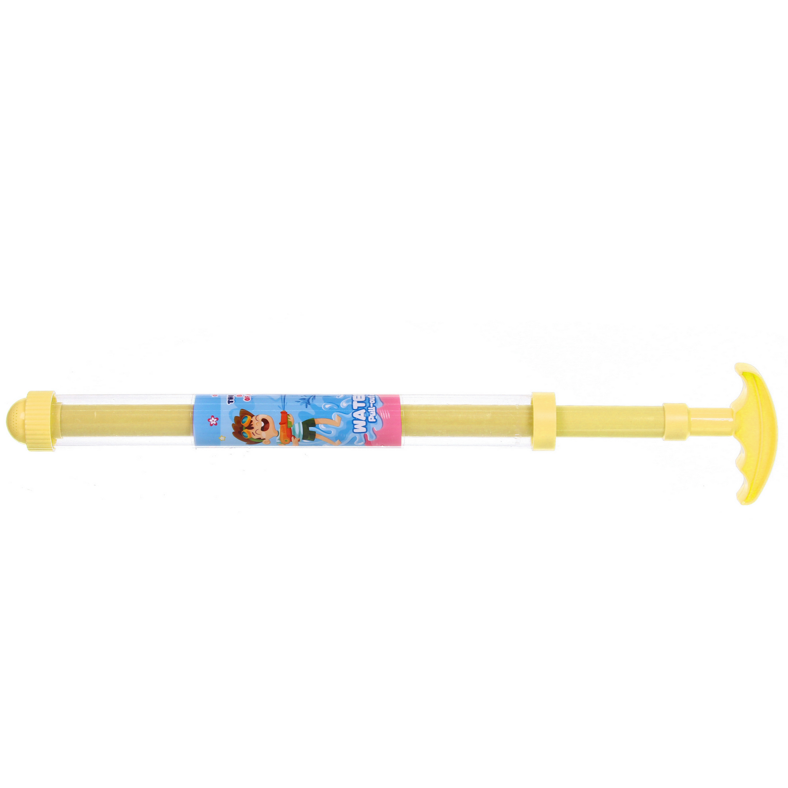 - Яркий дизайн и прозрачный корпус: Яркие цветные элементы (рукоятка, насадка, внутренний стержень) привлекают внимание детей. Прозрачный цилиндр позволяет видеть, сколько воды осталось, что добавляет игровому процессу наглядности.