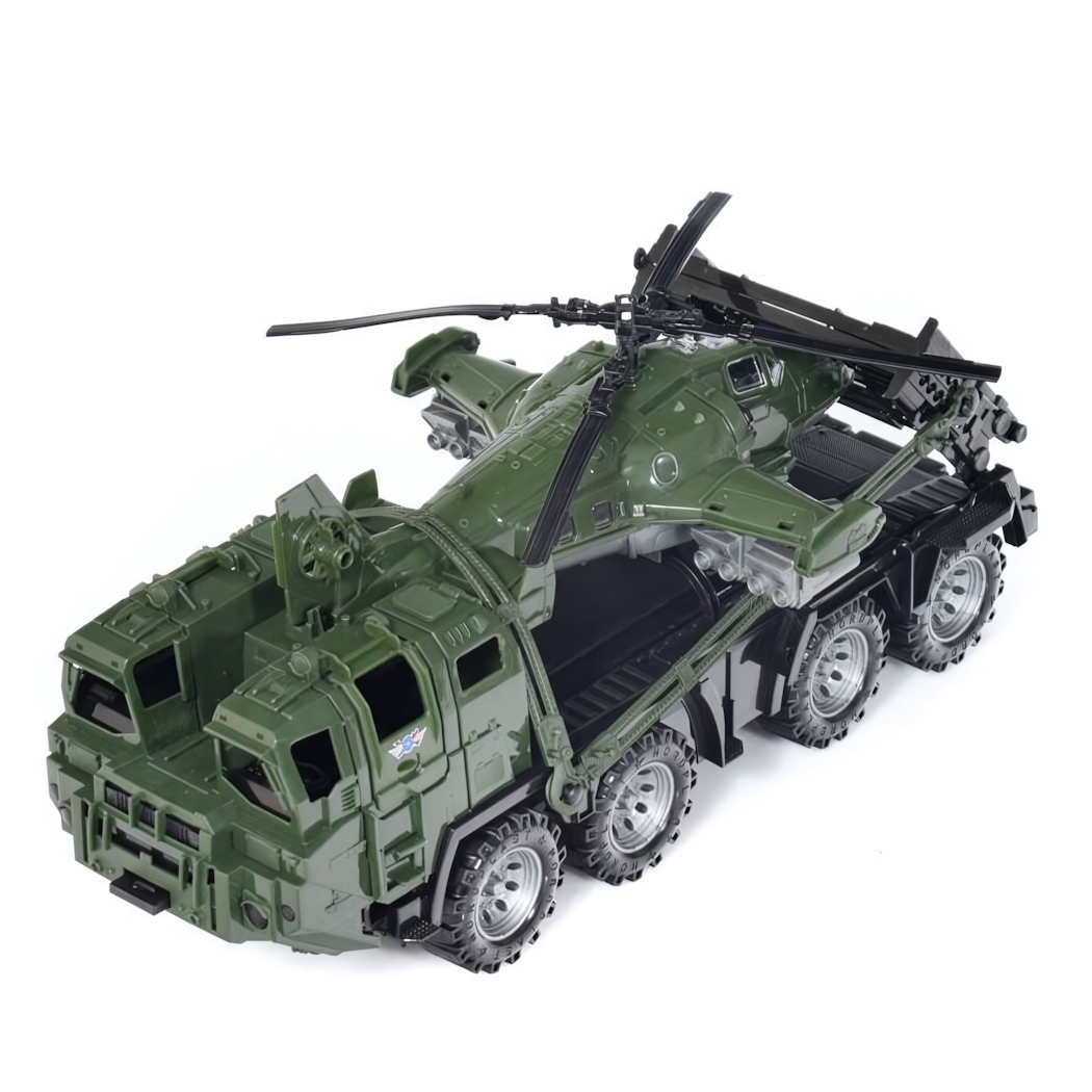 Военный тягач «Щит» с вертолетом, игрушка из прочного пластика, зеленая, открывающиеся двери