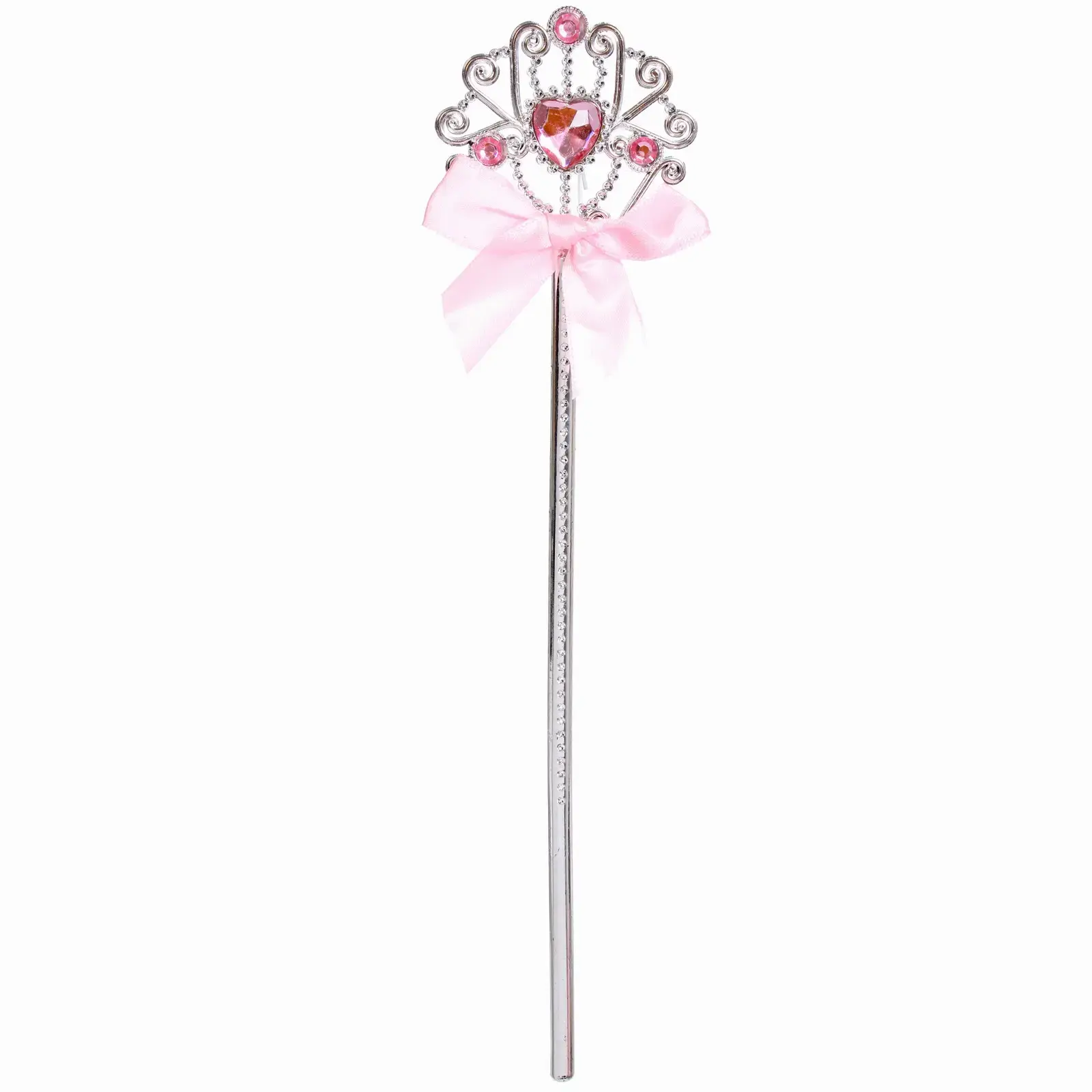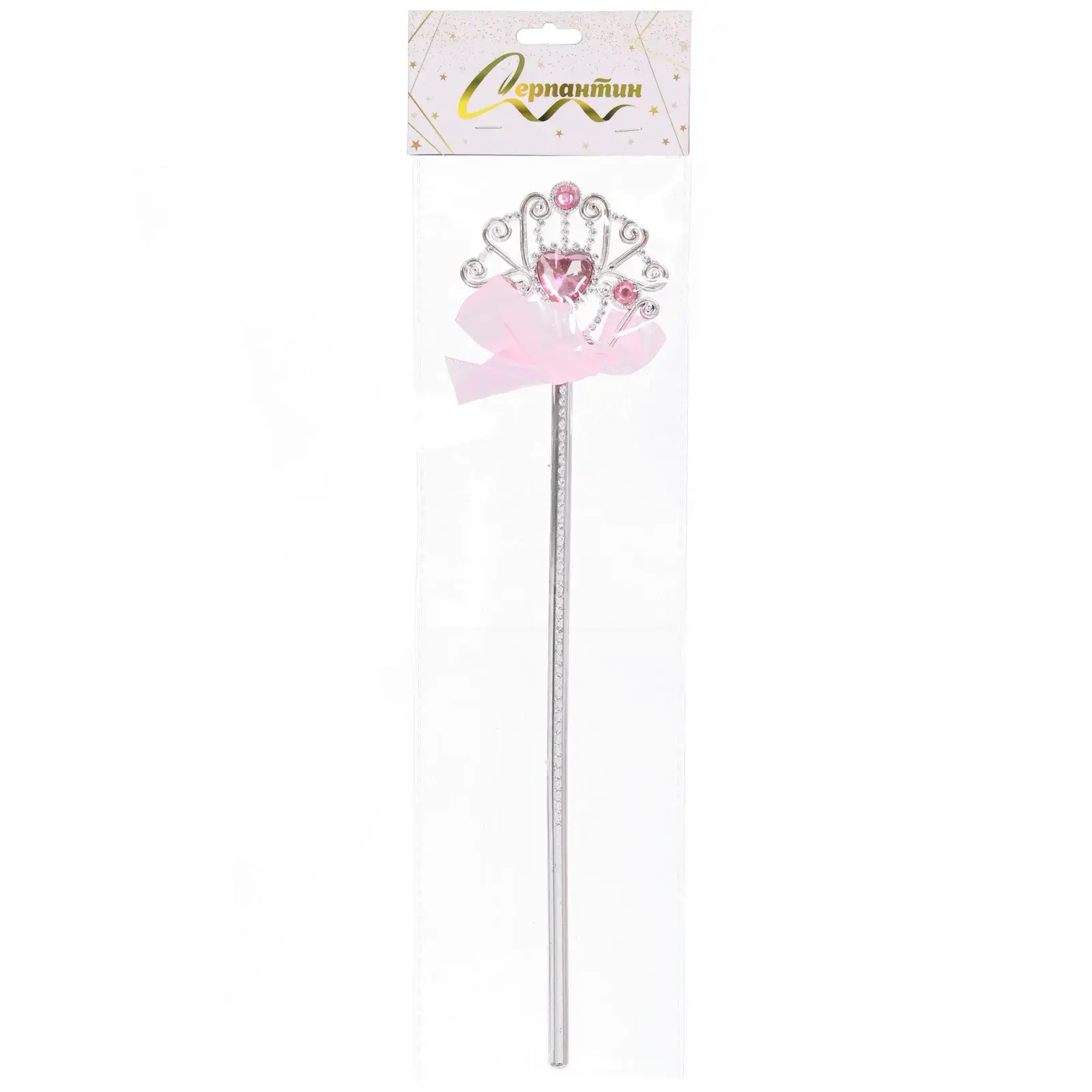 Палочка выполнена из качественного пластика, что делает её легкой и удобной в обращении. Декоративные элементы, такие как розовые камни и бантик, придают ей праздничный вид. Размер палочки не указан, но она подходит для детей и взрослых, что делает её универсальным аксессуаром для любого праздника.