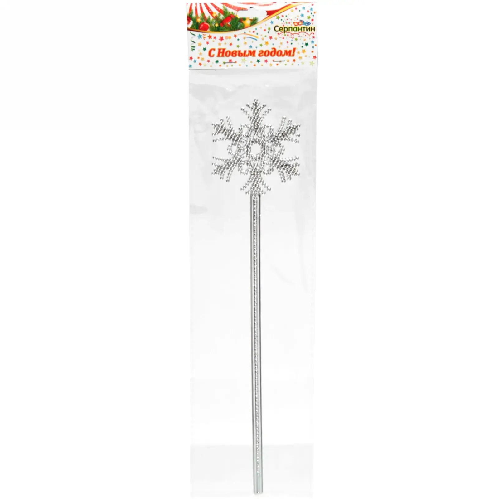 Эта волшебная палочка станет незаменимым аксессуаром для вашего новогоднего праздника. С её помощью вы сможете добавить атмосферу сказки и волшебства в любое мероприятие. Серебристый цвет и изящный дизайн в виде снежинки делают её идеальным элементом для украшения как дома, так и для карнавальных костюмов.
