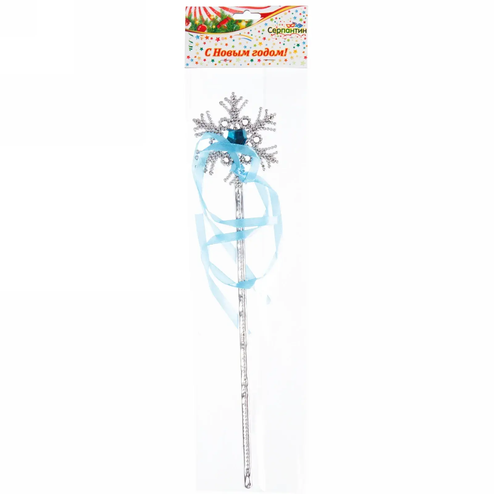 Волшебная палочка «Снежинка с лентой», новогодний декор, серебристый, голубые ленты, 32х7 см, пластик