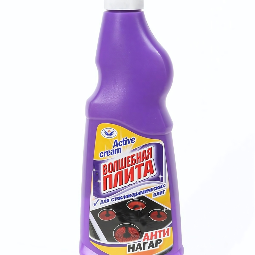 Почему стоит выбрать именно 'Волшебную плиту'? Во-первых, это средство эффективно борется с трудновыводимыми загрязнениями и нагарами, оставляя поверхность чистой и блестящей. Во-вторых, его удобная упаковка с эргономичной формой позволяет легко удерживать бутылку во время использования. В-третьих, фиолетовый цвет упаковки и яркий дизайн делают его стильным дополнением к вашему кухонному арсеналу.