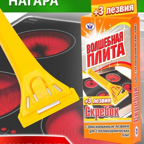 Обеспечьте идеальную чистоту вашей стеклокерамической плиты с помощью скребка 'Волшебная плита'. Этот инструмент не только удобен в использовании, но и гарантирует высокое качество очистки, что делает его незаменимым помощником на кухне. С его помощью вы сможете быстро и эффективно удалить загрязнения, не повреждая поверхность плиты.