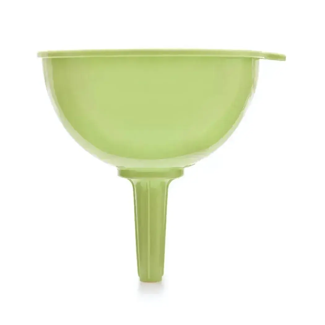 Изделие из прочного пищевого пластика устойчиво к химическим воздействиям и температурным перепадам. Гладкая поверхность предотвращает залипание продуктов, а компактные размеры позволяют хранить воронку в любом кухонном ящике.