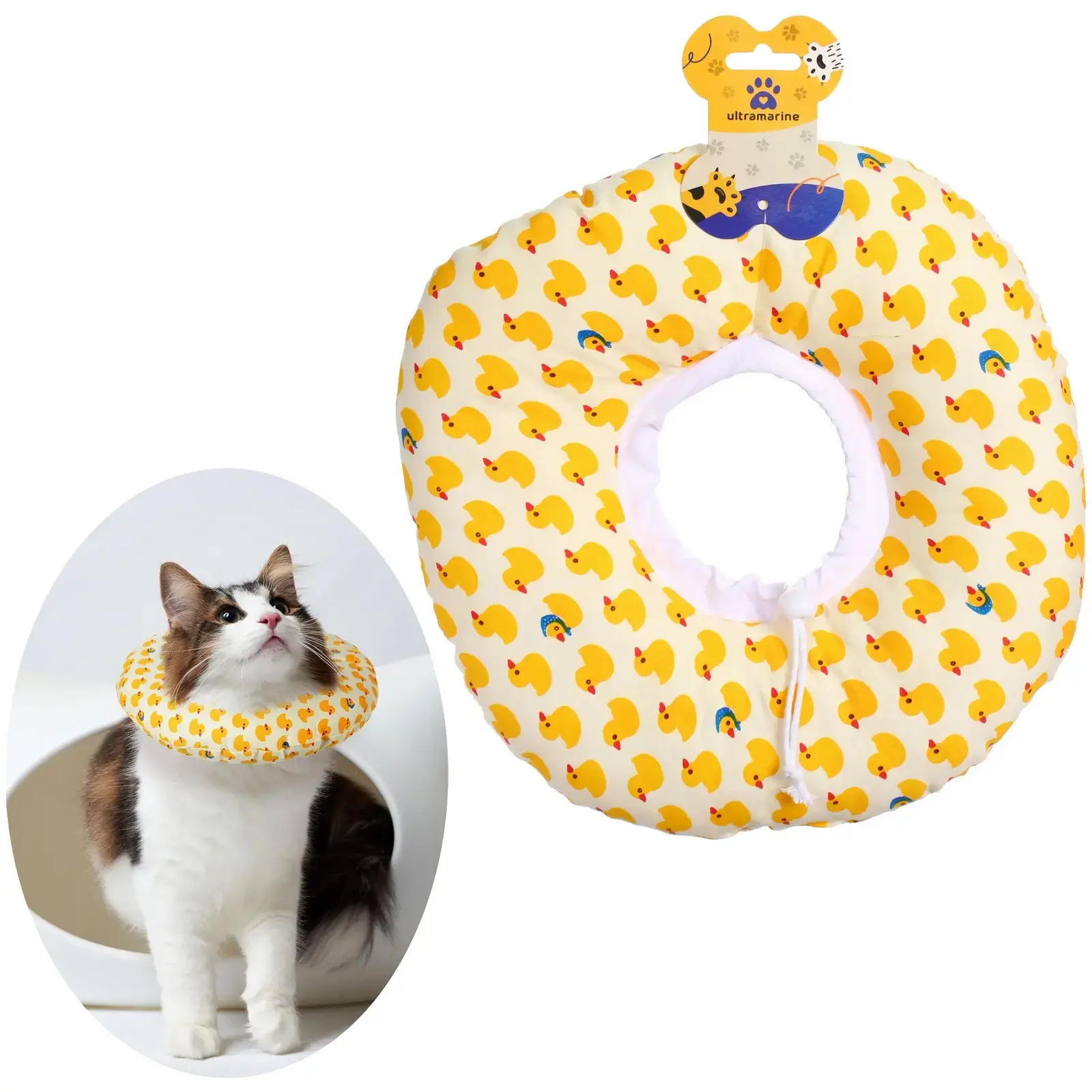 - Эстетика: яркий дизайн с утятами поднимает настроение и делает процесс восстановления менее стрессовым для вашего питомца.