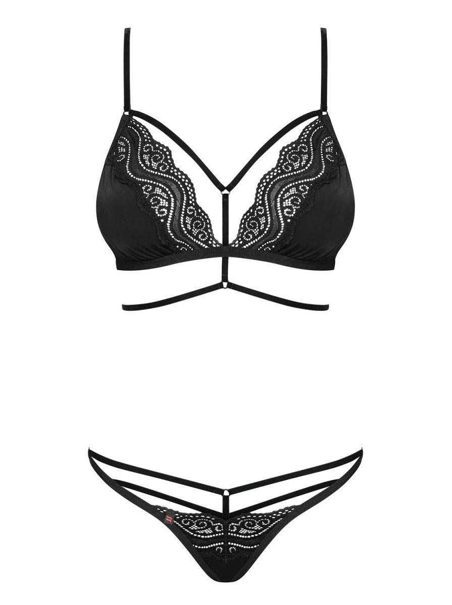 Комплект белья Diyosa подходит для женщин, которые ценят стиль и комфорт. Бюстгальтер имеет застежку на спине с несколькими рядами крючков, что позволяет легко регулировать его под вашу фигуру. Трусики-стринги, также декорированные кружевом, идеально дополняют образ, создавая эффект обнажения и подчеркивая ваши достоинства.