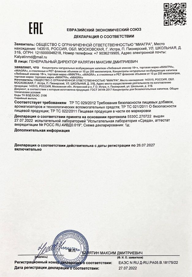 Растворите 5-10 капель в любой жидкости за 10-20 минут до предполагаемой близости. Рекомендуется провести тест на чувствительность перед первым применением.