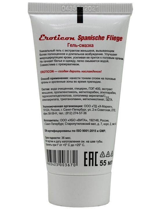 Гель-смазка «Шпанская мушка», возбуждающий афродизиак с женьшенем, 50 мл