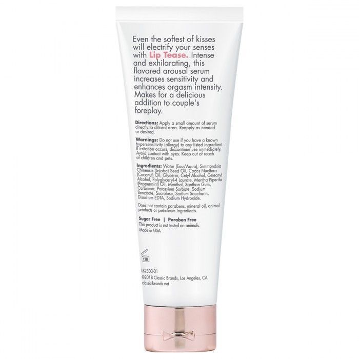 Позвольте себе испытать новые грани наслаждения с возбуждающим гелем 'Lip Tease'. Специальная формула с ментоловым компонентом усиливает естественную чувствительность и дарит незабываемые ощущения.