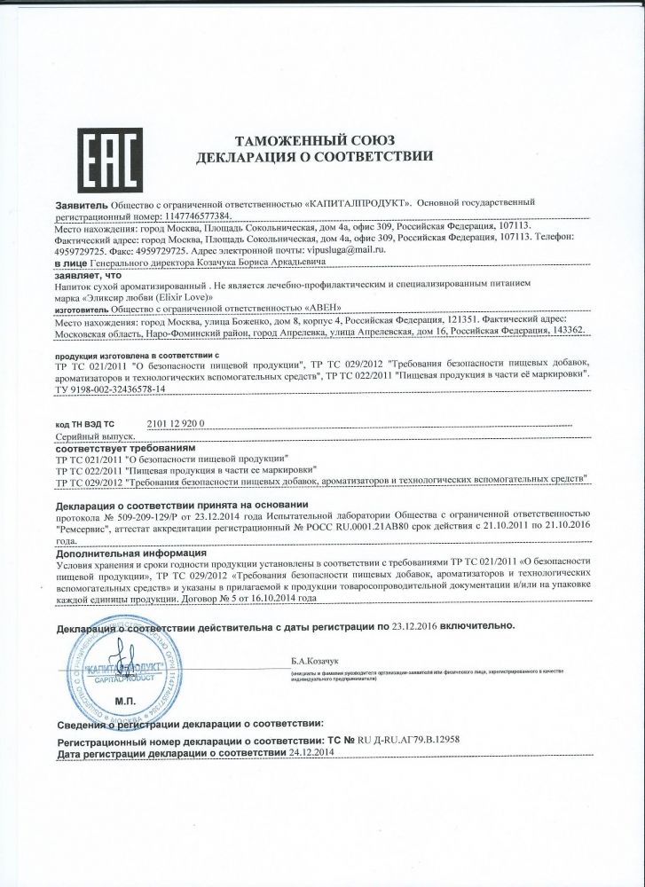 Сухой быстрорастворимый напиток "Эликсир Любви" создан для тех, кто хочет добавить ярких красок в интимную жизнь. Этот специально разработанный состав помогает обострить чувства и повысить сексуальную самооценку, делая каждый момент особенным.