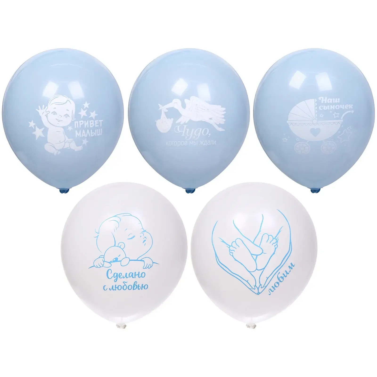 Шары имеют стандартный размер 10 дюймов (25 см) и представлены в двух цветах: светло-голубом и белом. На каждом шаре изображены милые детские рисунки и надписи, которые добавляют особый шарм и радость в любое событие. Эти шары подойдут для празднования рождения мальчика, а также для других мероприятий, связанных с детьми.
