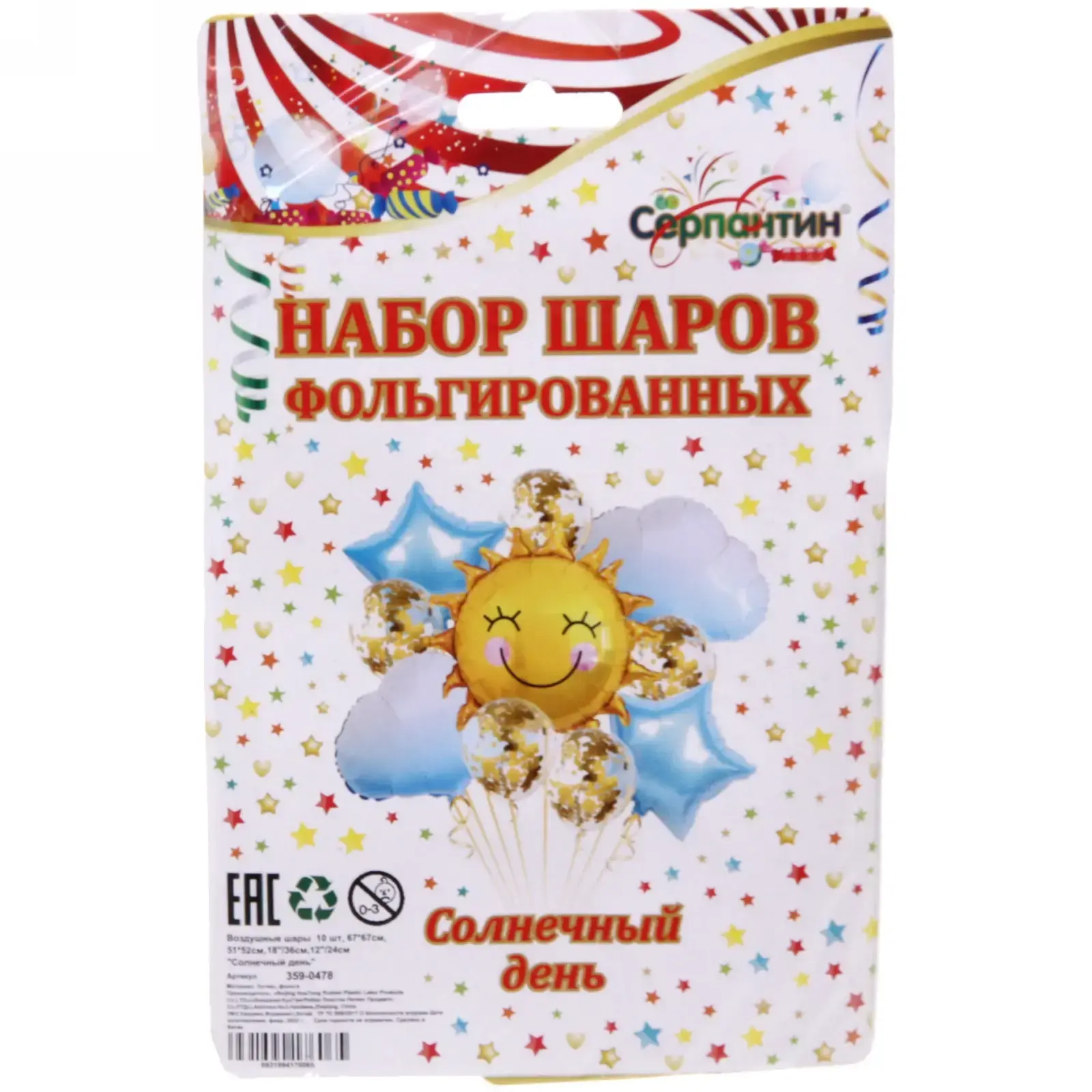 Набор из 10 ярких шаров с уникальным дизайном превратит любое мероприятие в незабываемое событие. Композиция из улыбающегося солнца, воздушных облаков и мерцающих звёзд подчеркнёт тематику оформления и привлечёт восторженные взгляды гостей.