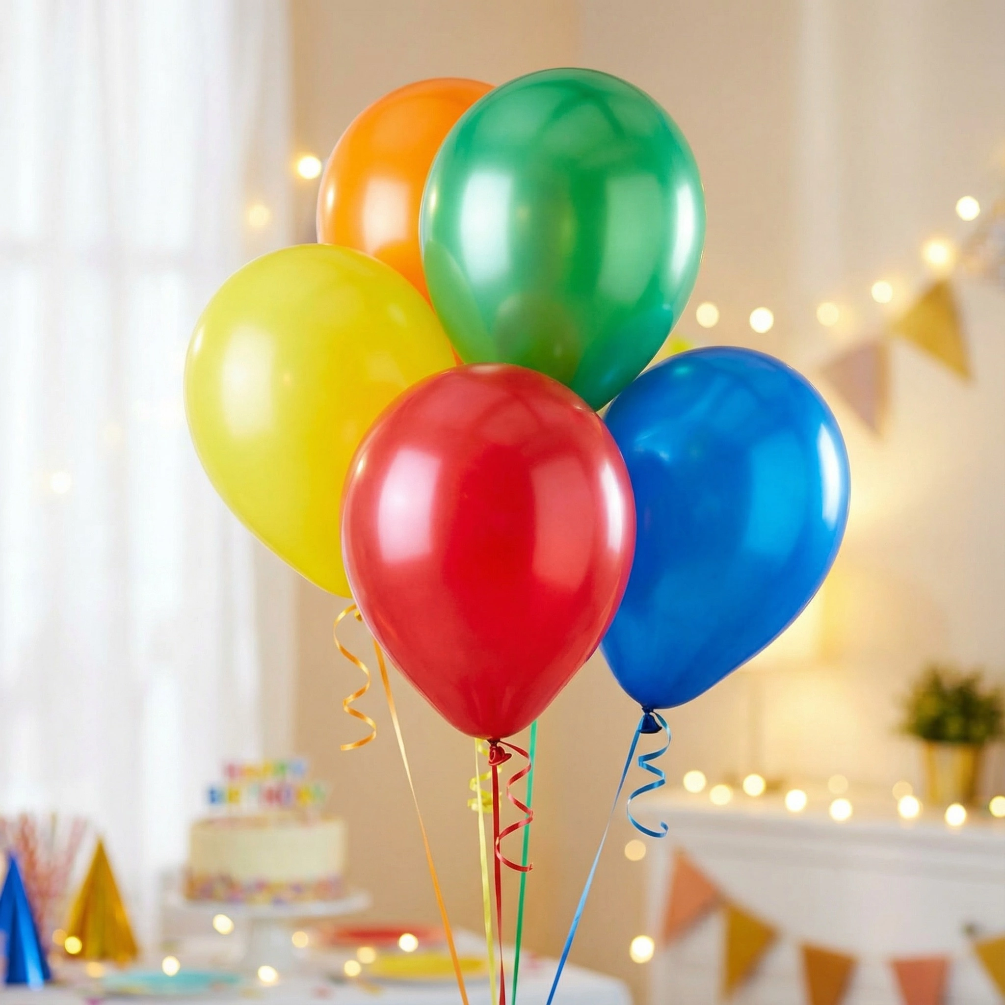 Важно: шары поставляются в ненадутом состоянии. Цвета в наборе фиксированные — красный, оранжевый, желтый, зеленый и синий. Для длительного использования храните в оригинальной упаковке вдали от источников тепла.
