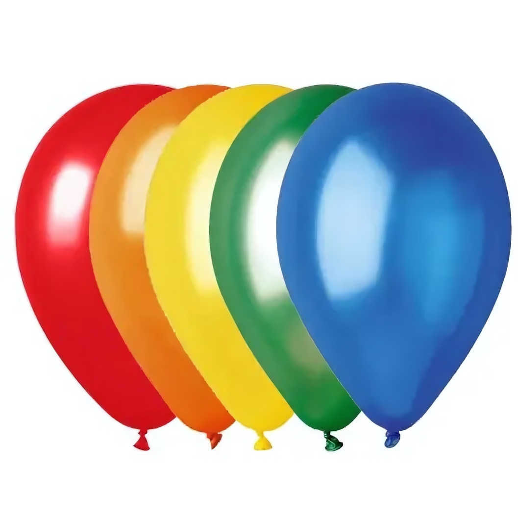 В комплекте: 5 шаров диаметром 25 см (10») в базовых цветах спектра. Материал: натуральный латекс повышенной прочности. Для достижения идеального результата рекомендуем использовать ручной насос и декоративную ленту.